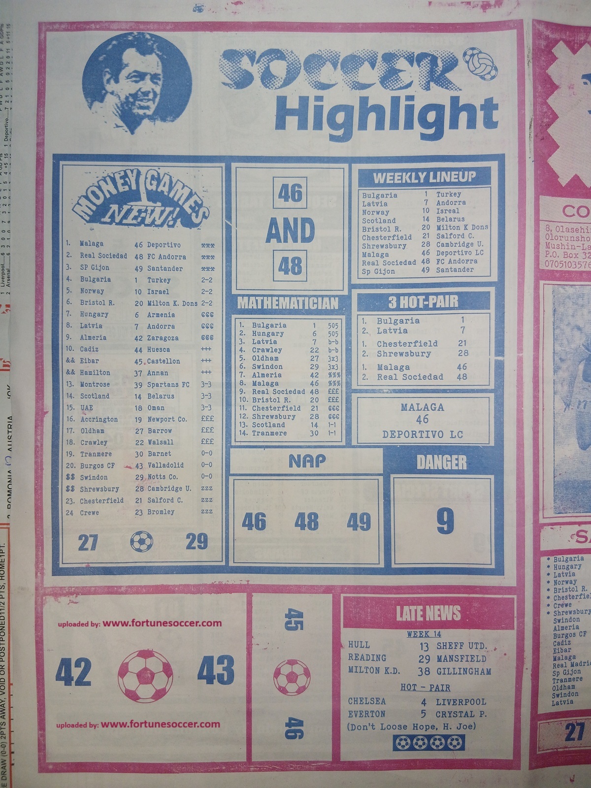 We also provide the best of Nigeria’s leading football pool forecasting papers, such as WinStar, BigWin, Dream International Research, and Weekly 1.X.2 Matrix, and pool advance fixtures, such as Special Advance Fixtures and Fortune Advanced Fixtures.