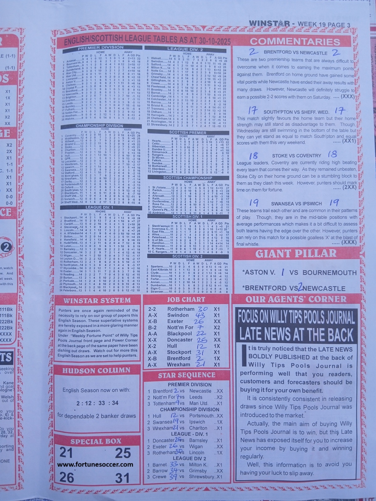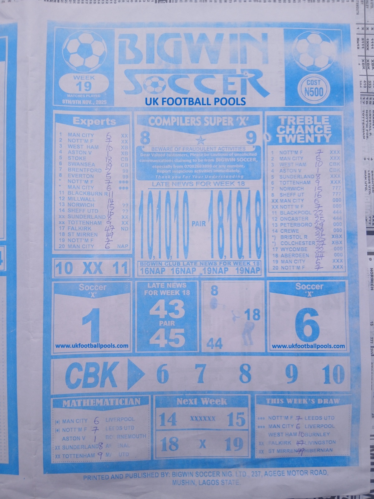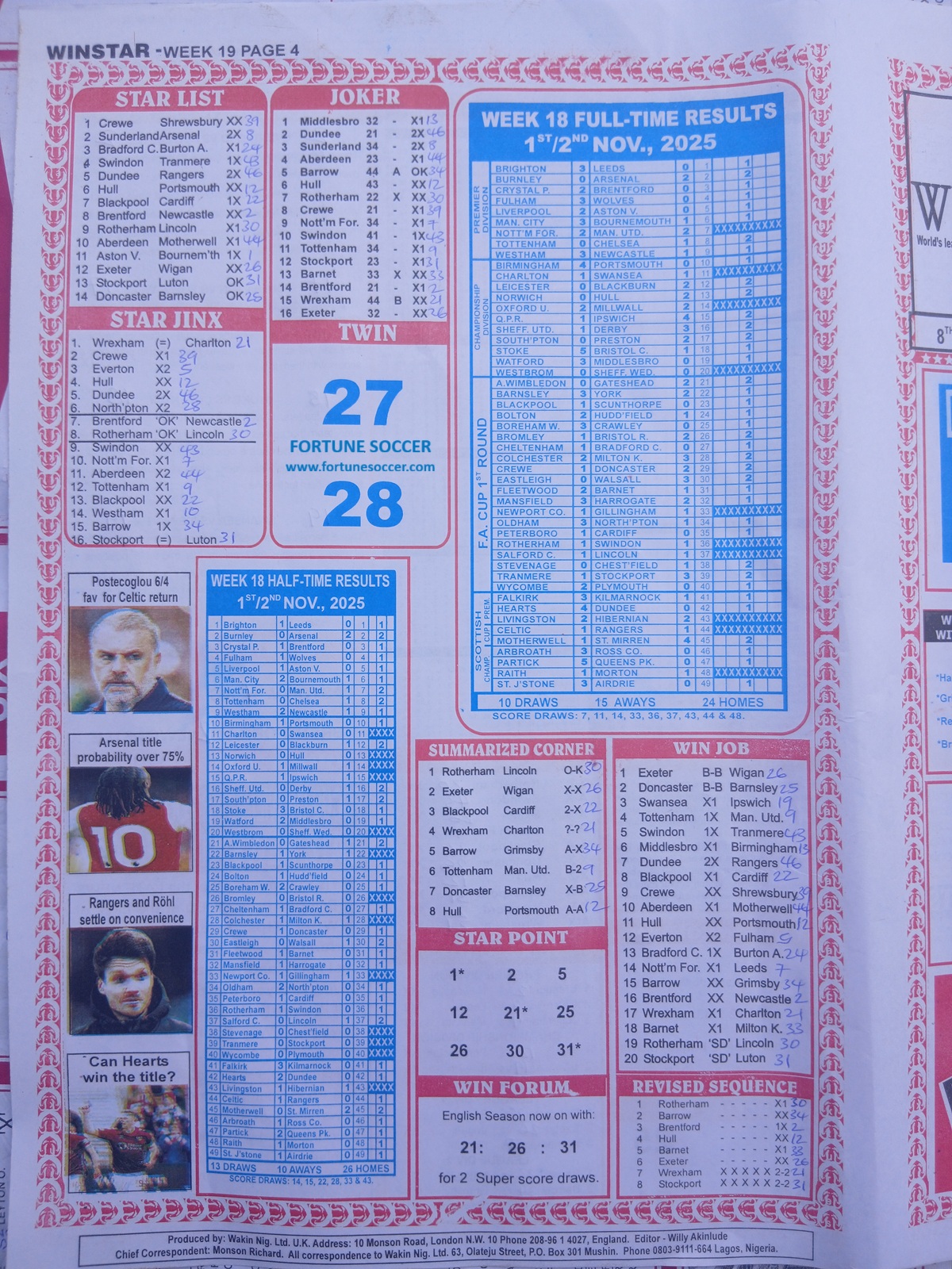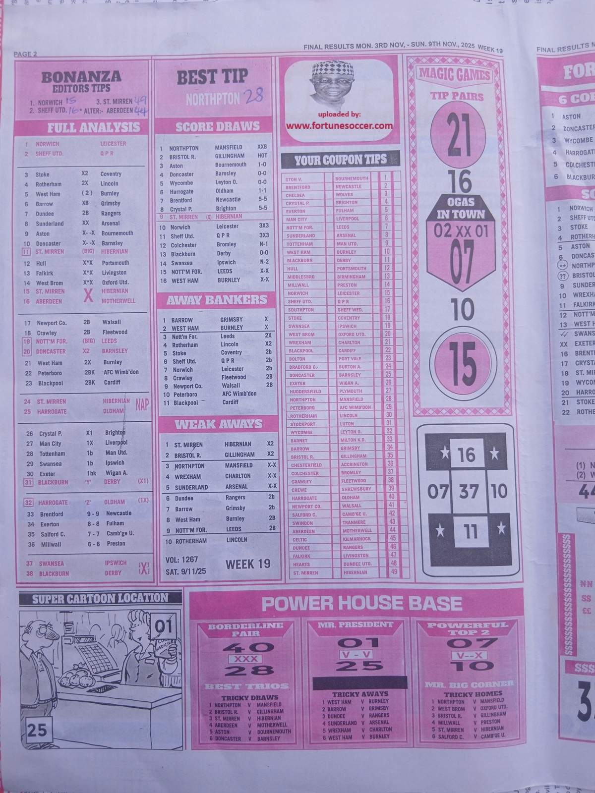 Week 19 RSK Papers 2025: Soccer, Bob Morton, Capital Intl, WinStar, BigWin