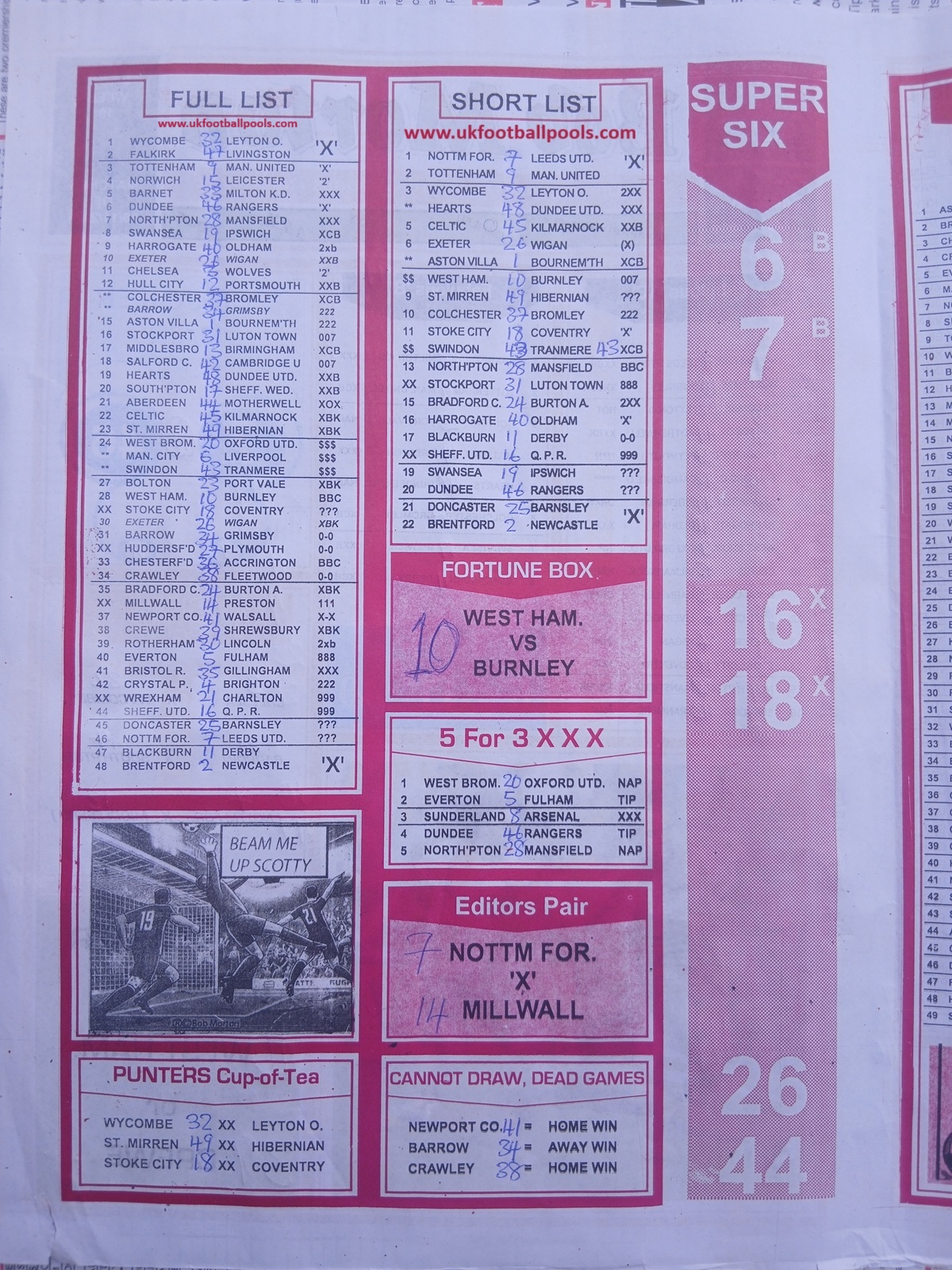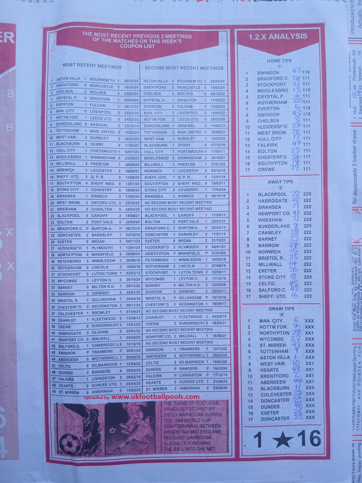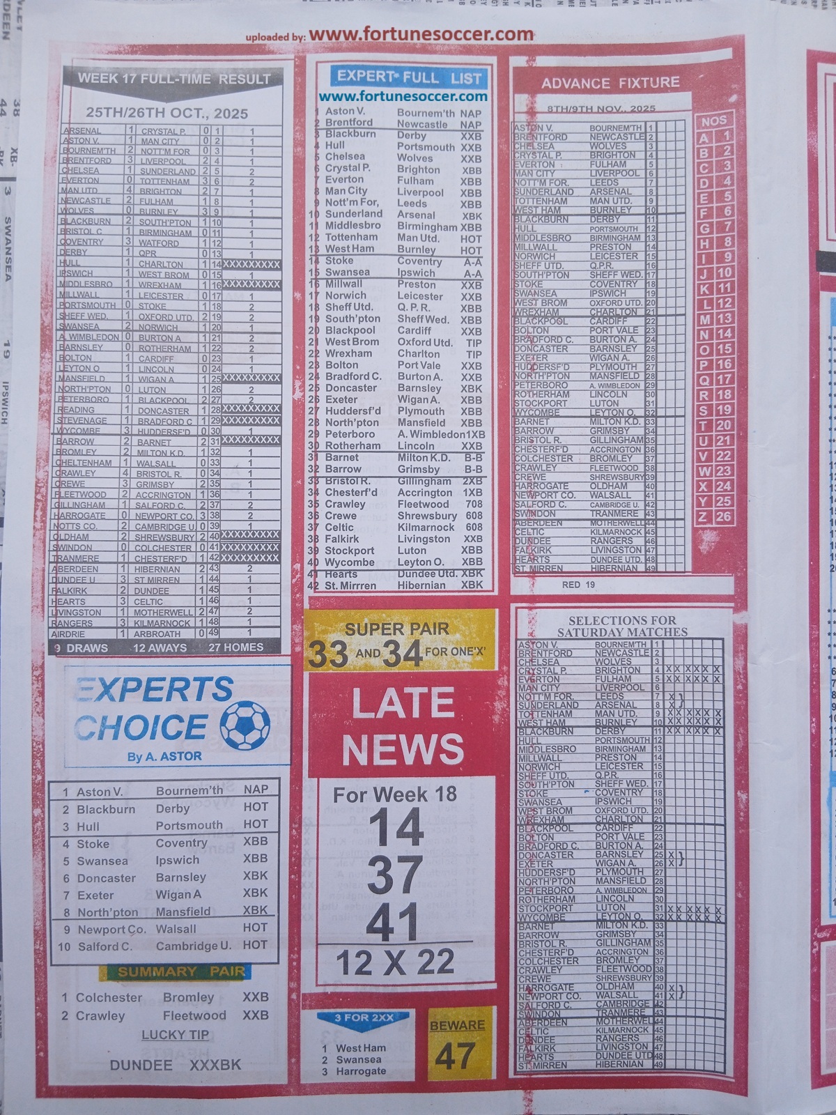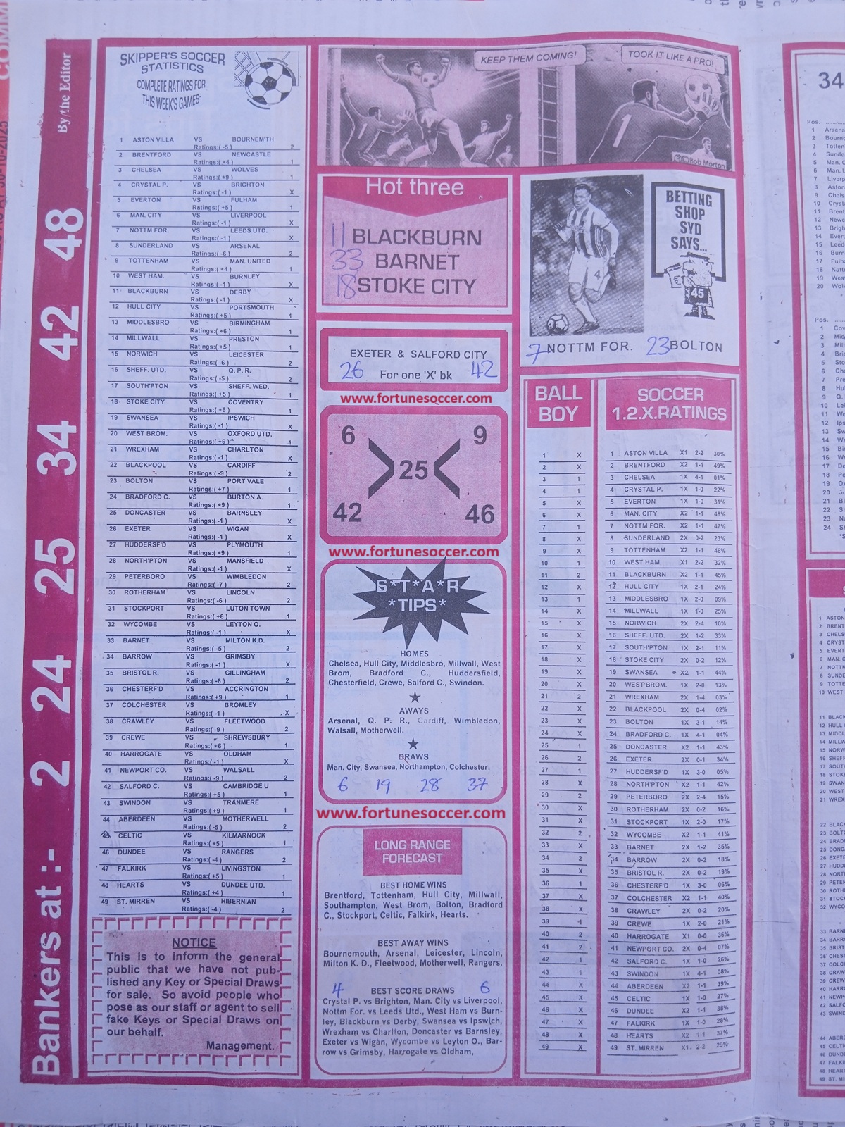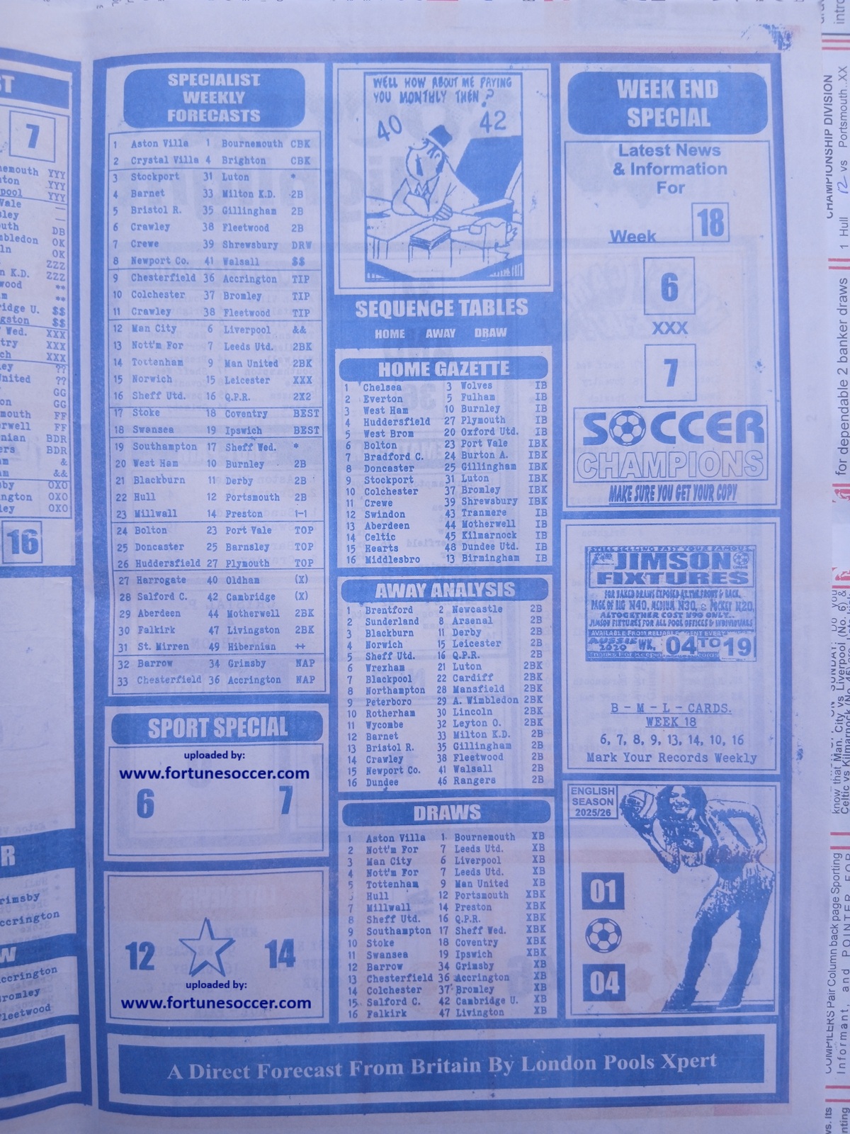 SPECIAL ADVANCE AND RIGHT ON FOOTBALL FIXTURES
