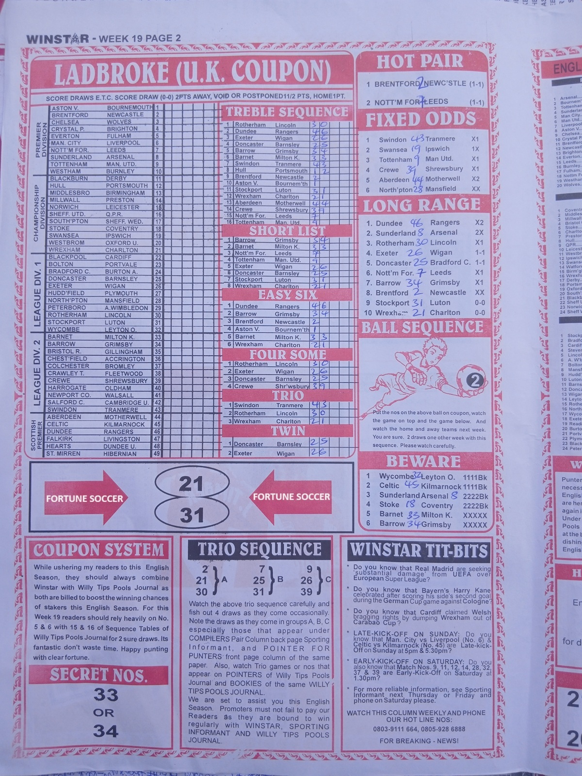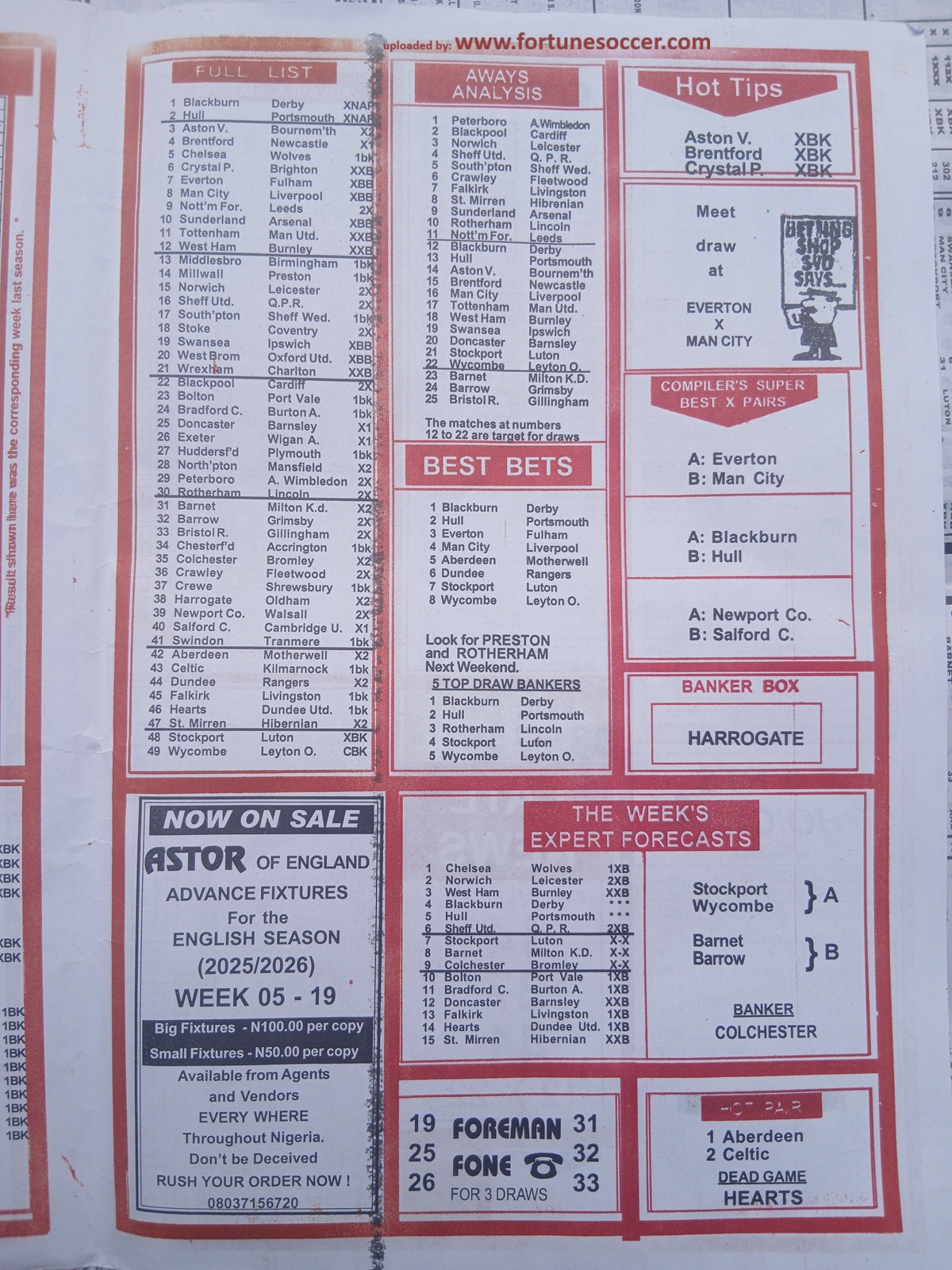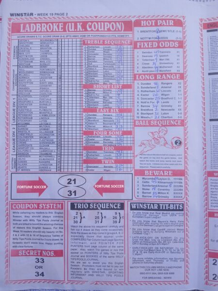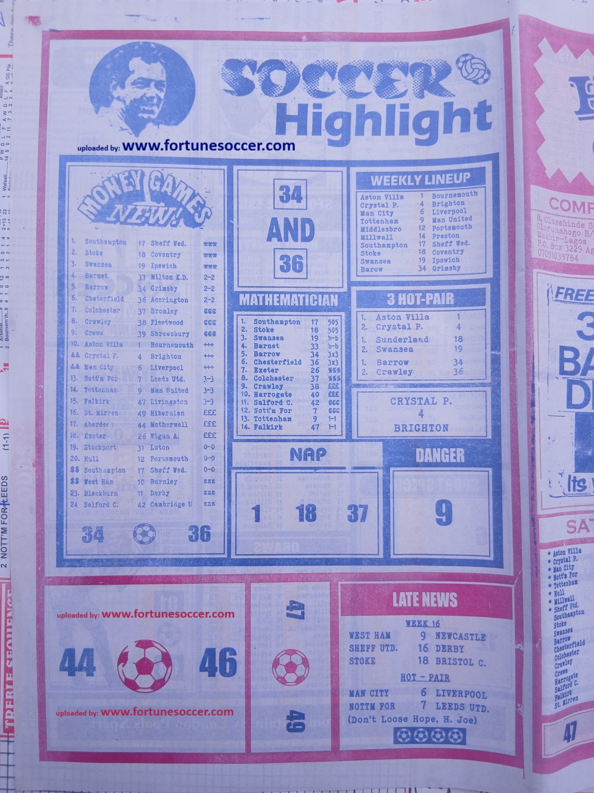 We also provide the best of Nigeria’s leading football pool forecasting papers, such as WinStar, BigWin, Dream International Research, and Weekly 1.X.2 Matrix, and pool advance fixtures, such as Special Advance Fixtures and Fortune Advanced Fixtures.