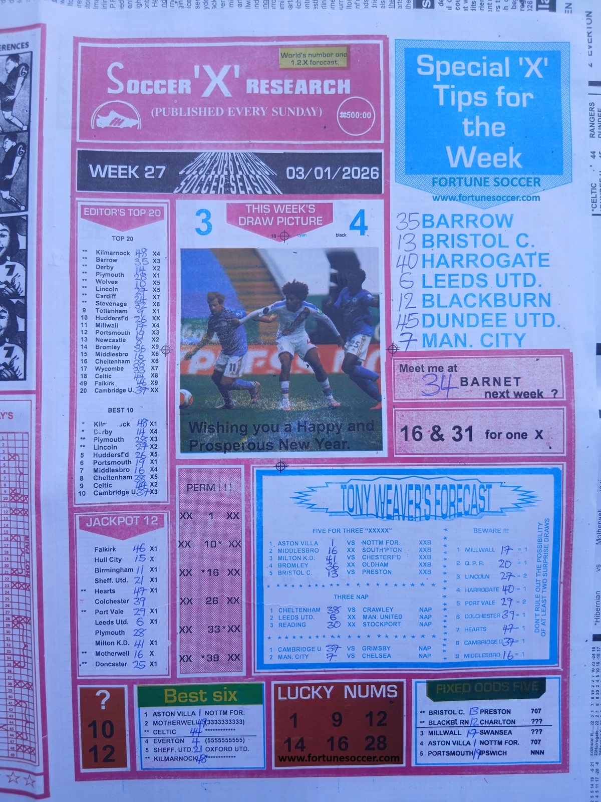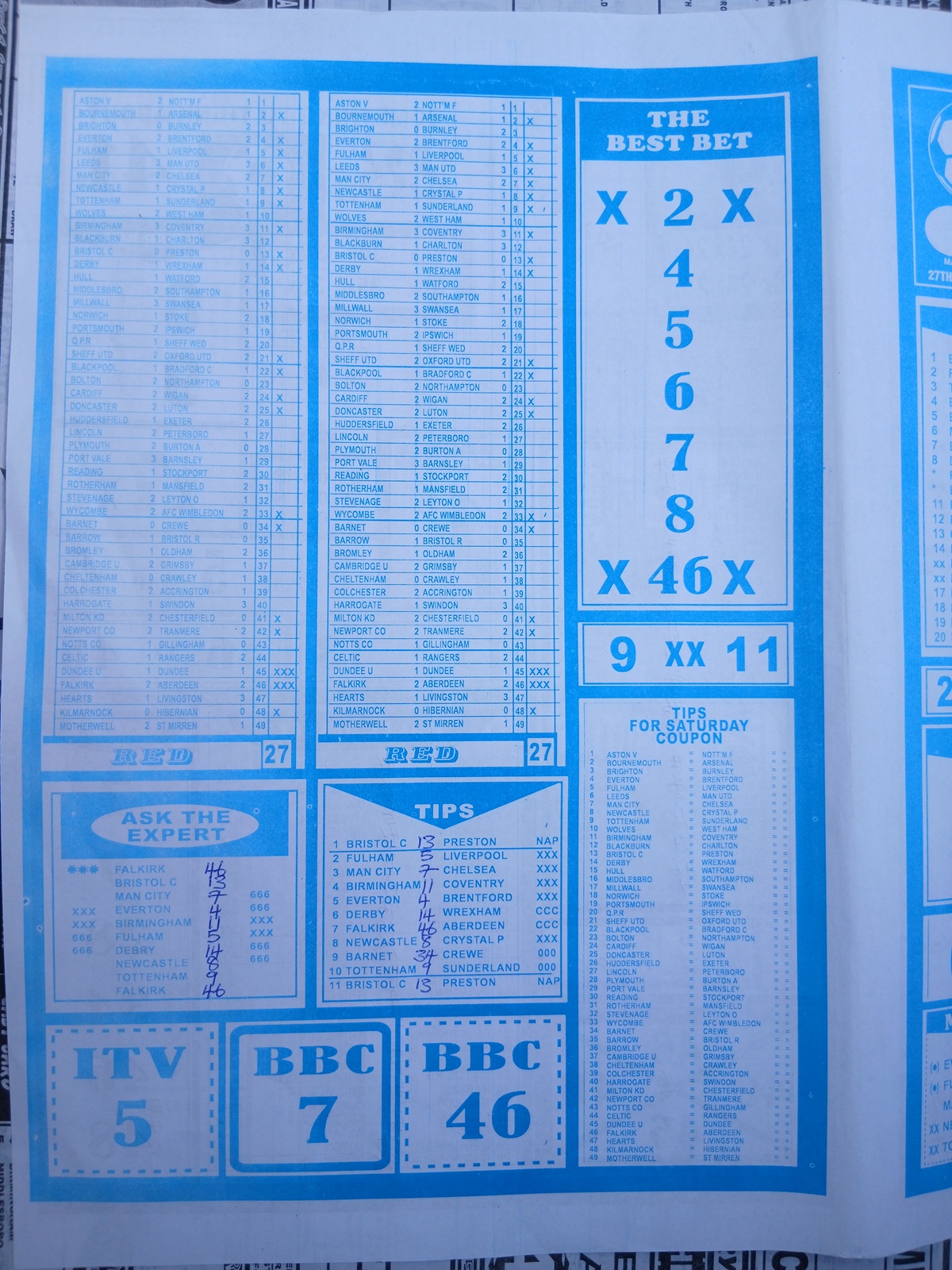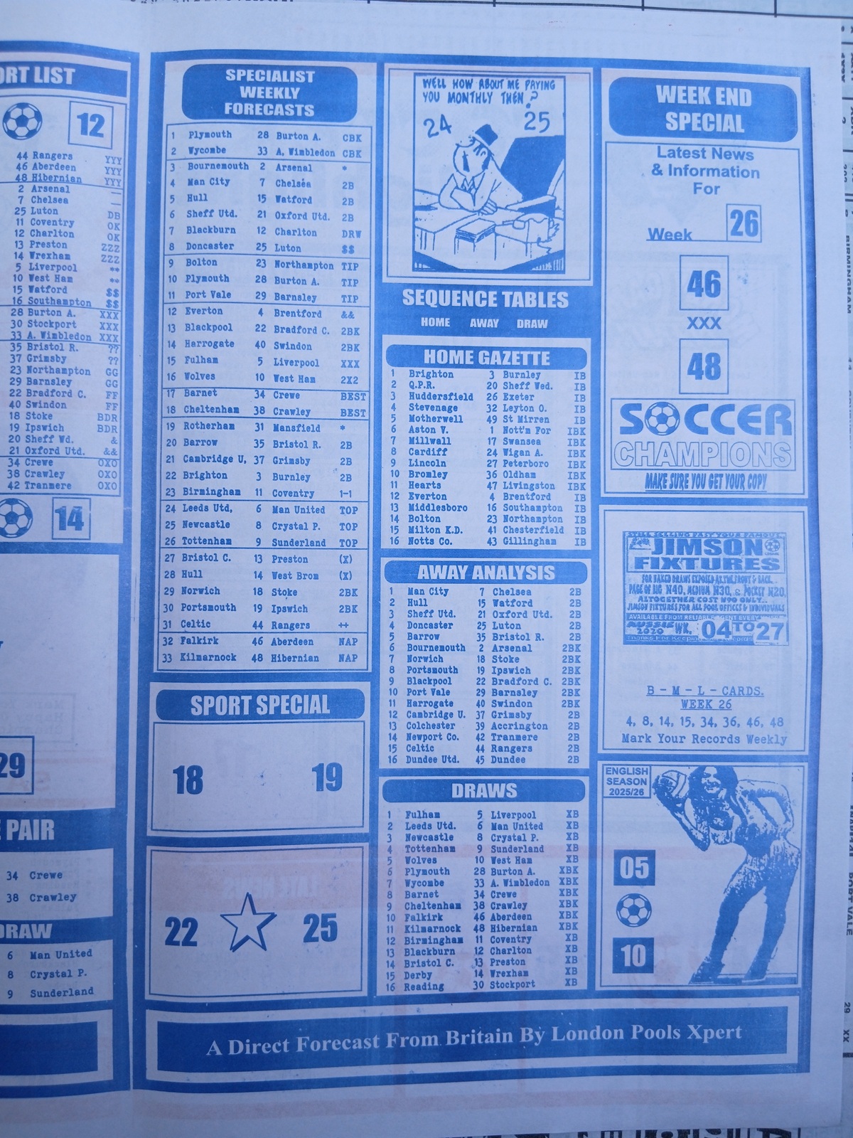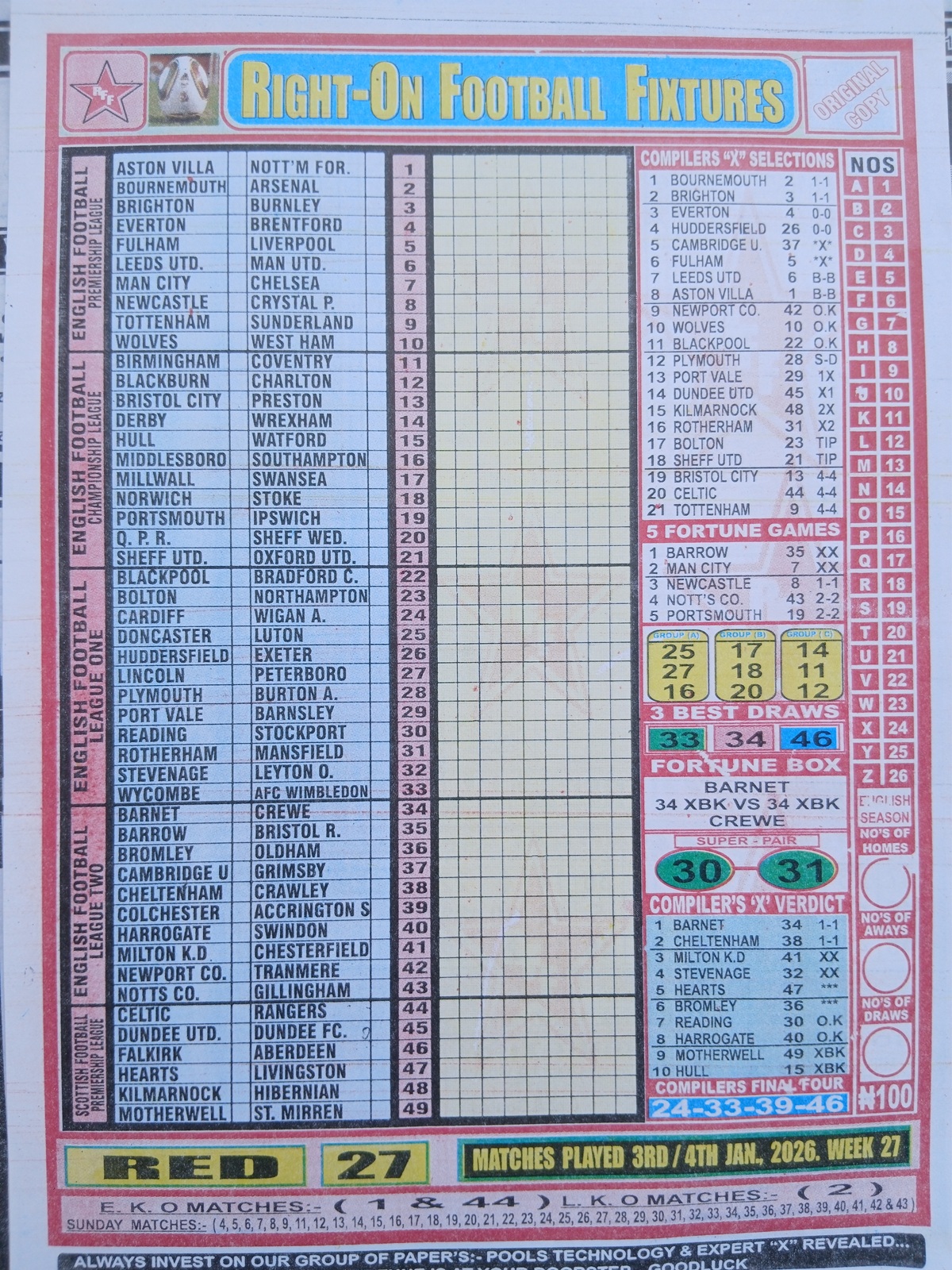 SPECIAL ADVANCE AND RIGHT ON FOOTBALL FIXTURES