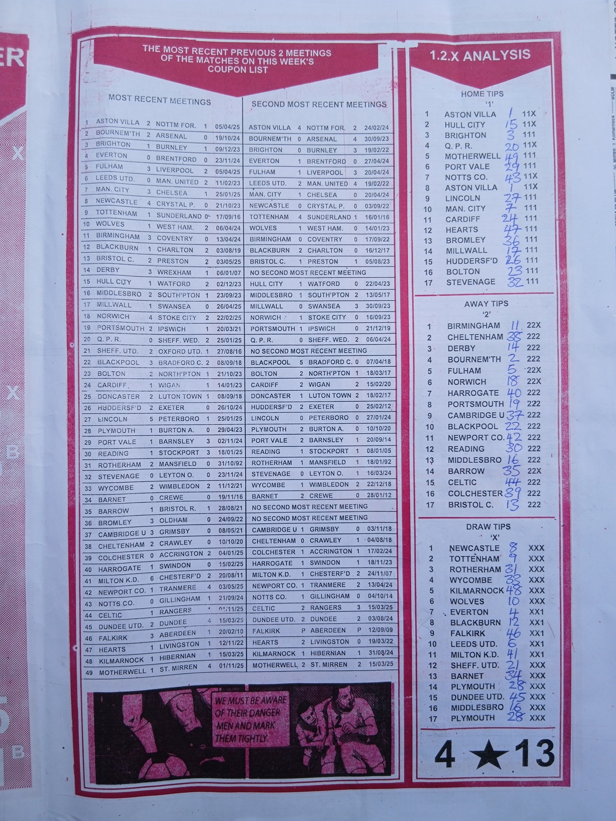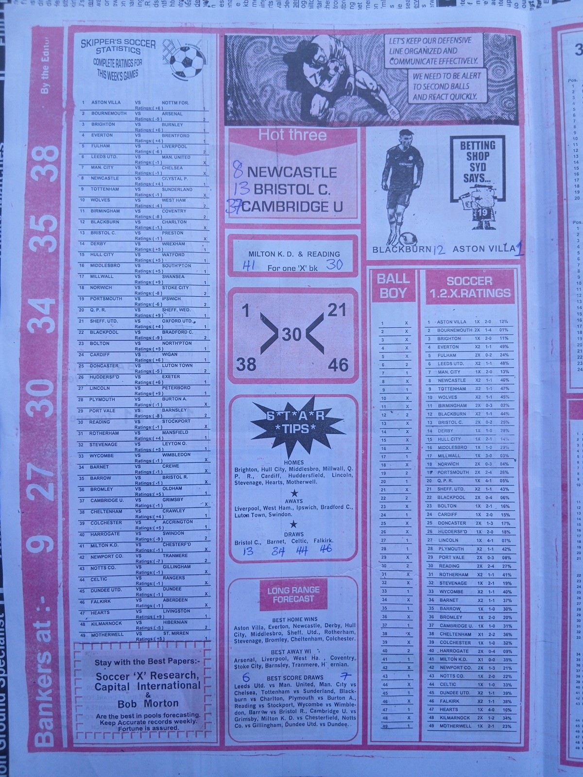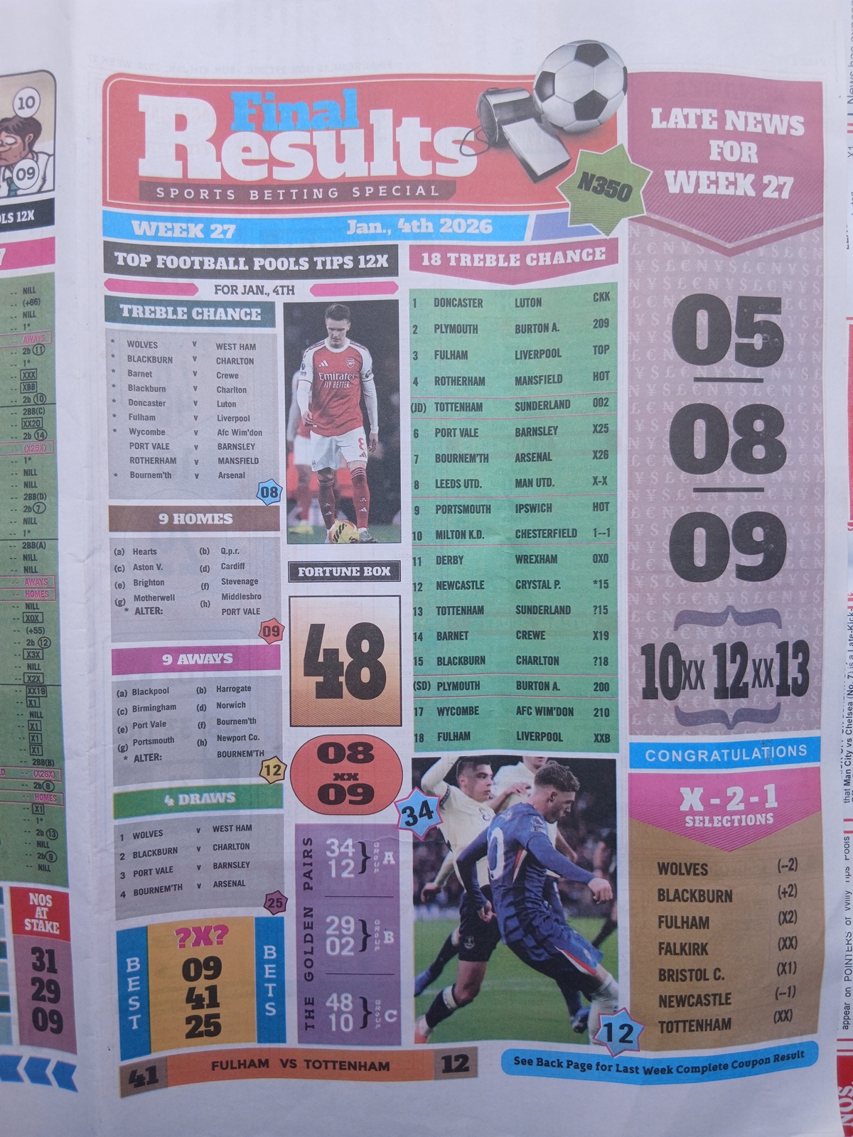 SPECIAL ADVANCE AND RIGHT ON FOOTBALL FIXTURES