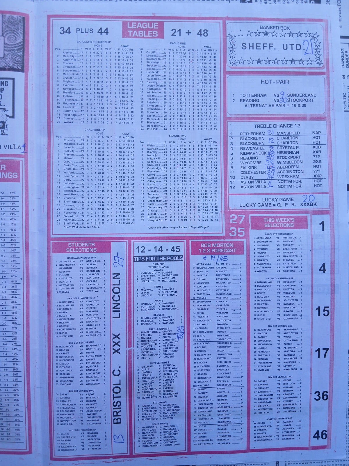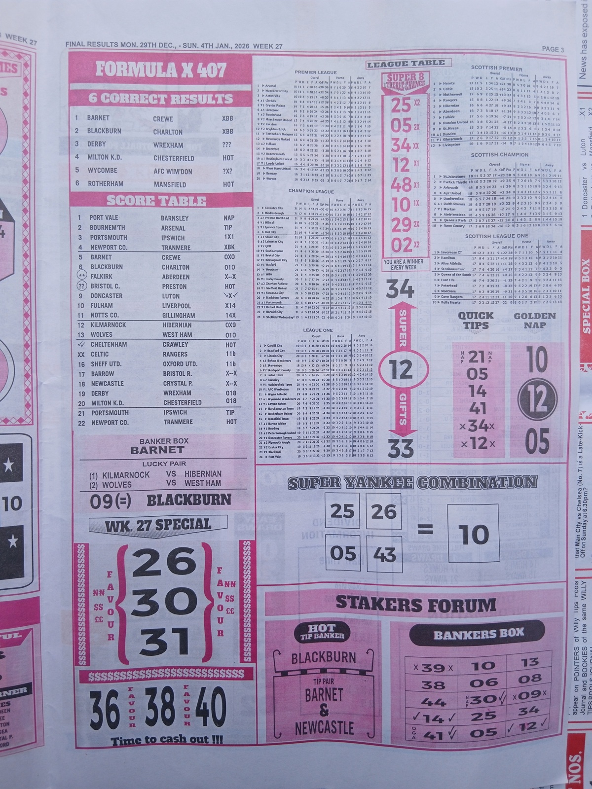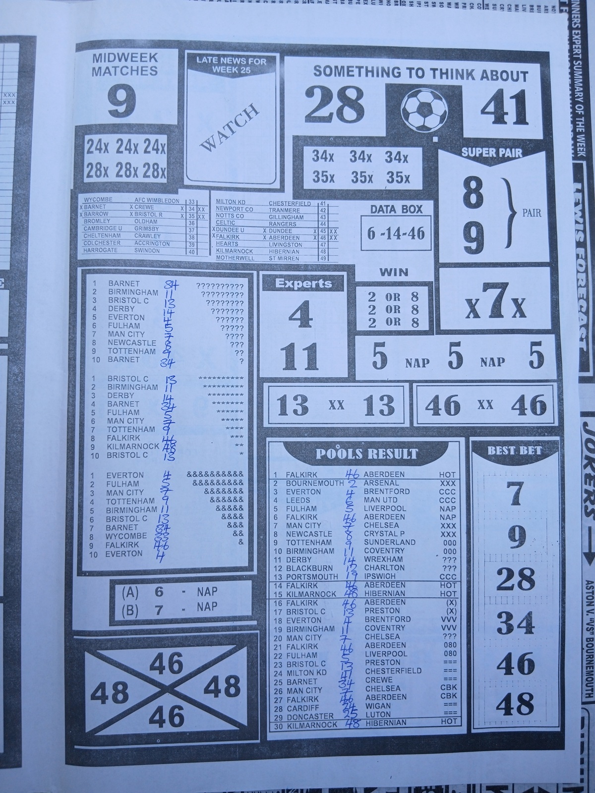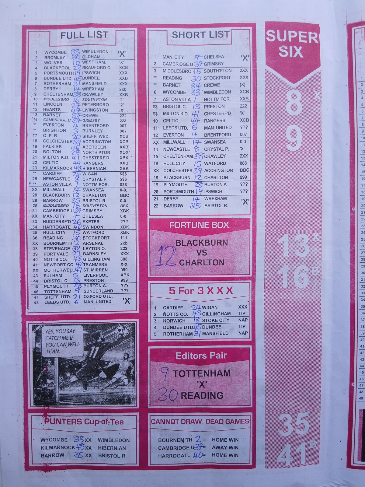 SPECIAL ADVANCE AND RIGHT ON FOOTBALL FIXTURES