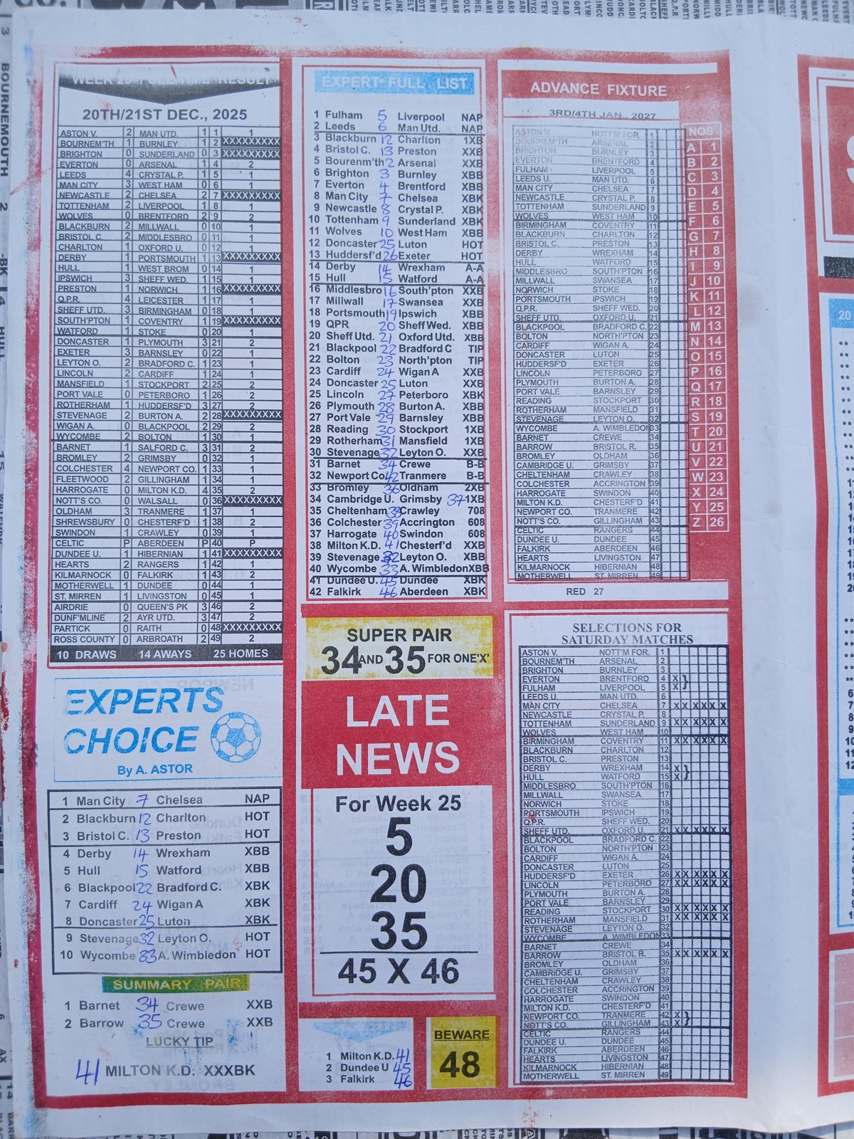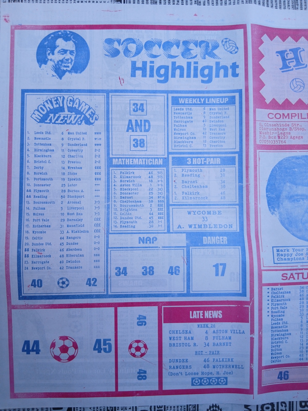 We also provide the best of Nigeria’s leading football pool forecasting papers, such as WinStar, BigWin, Dream International Research, and Weekly 1.X.2 Matrix, and pool advance fixtures, such as Special Advance Fixtures and Fortune Advanced Fixtures.