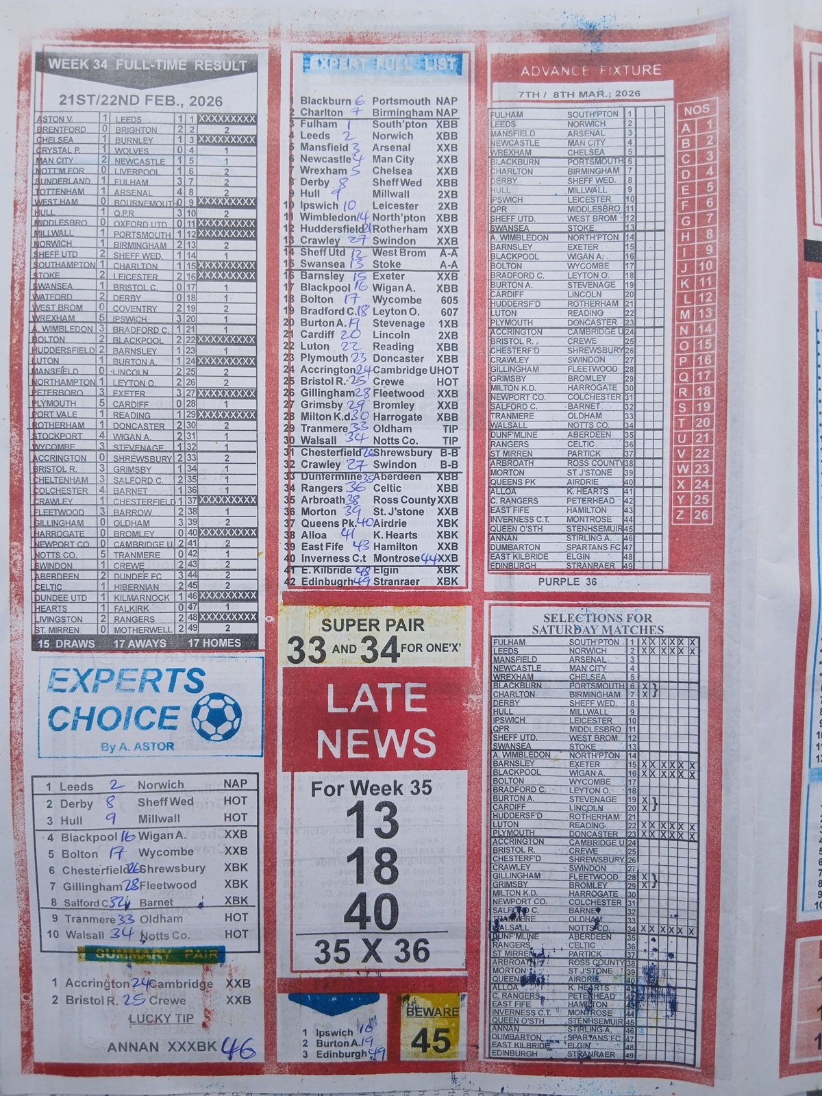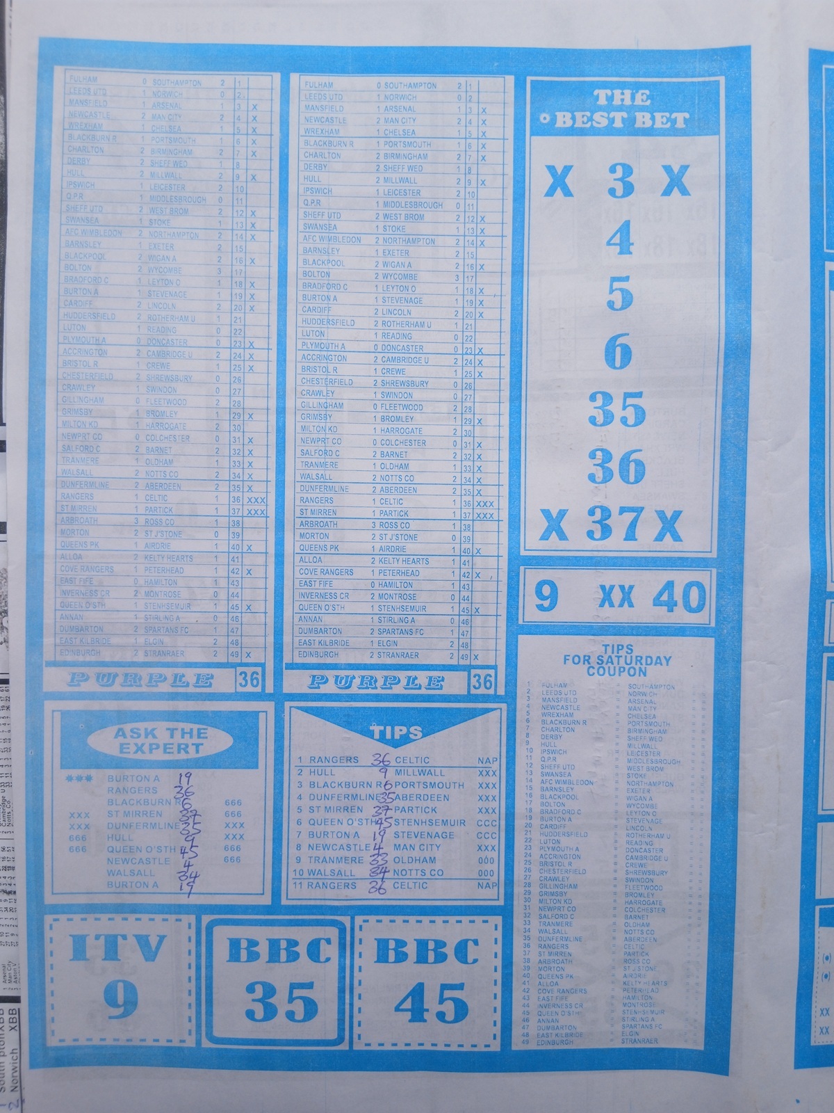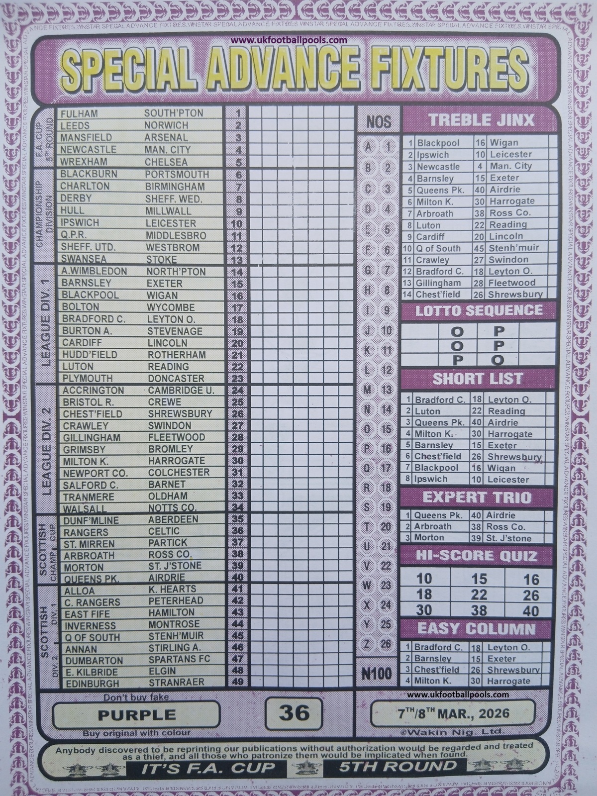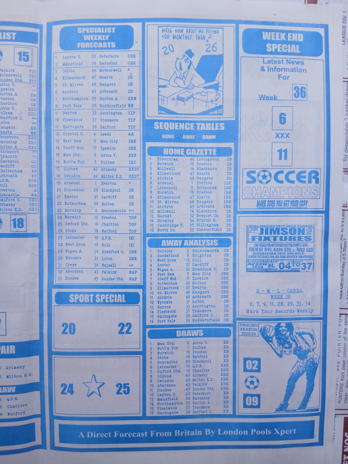 SPECIAL ADVANCE AND RIGHT ON FOOTBALL FIXTURES