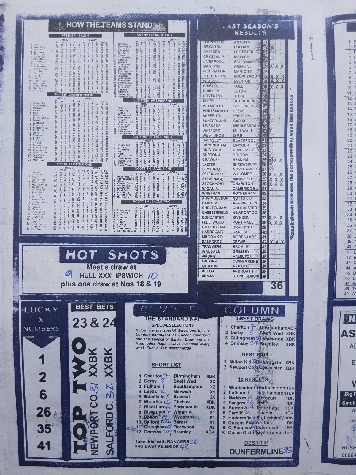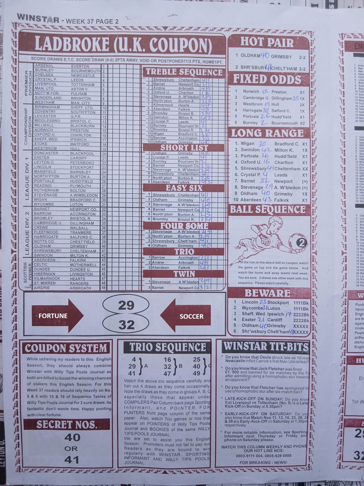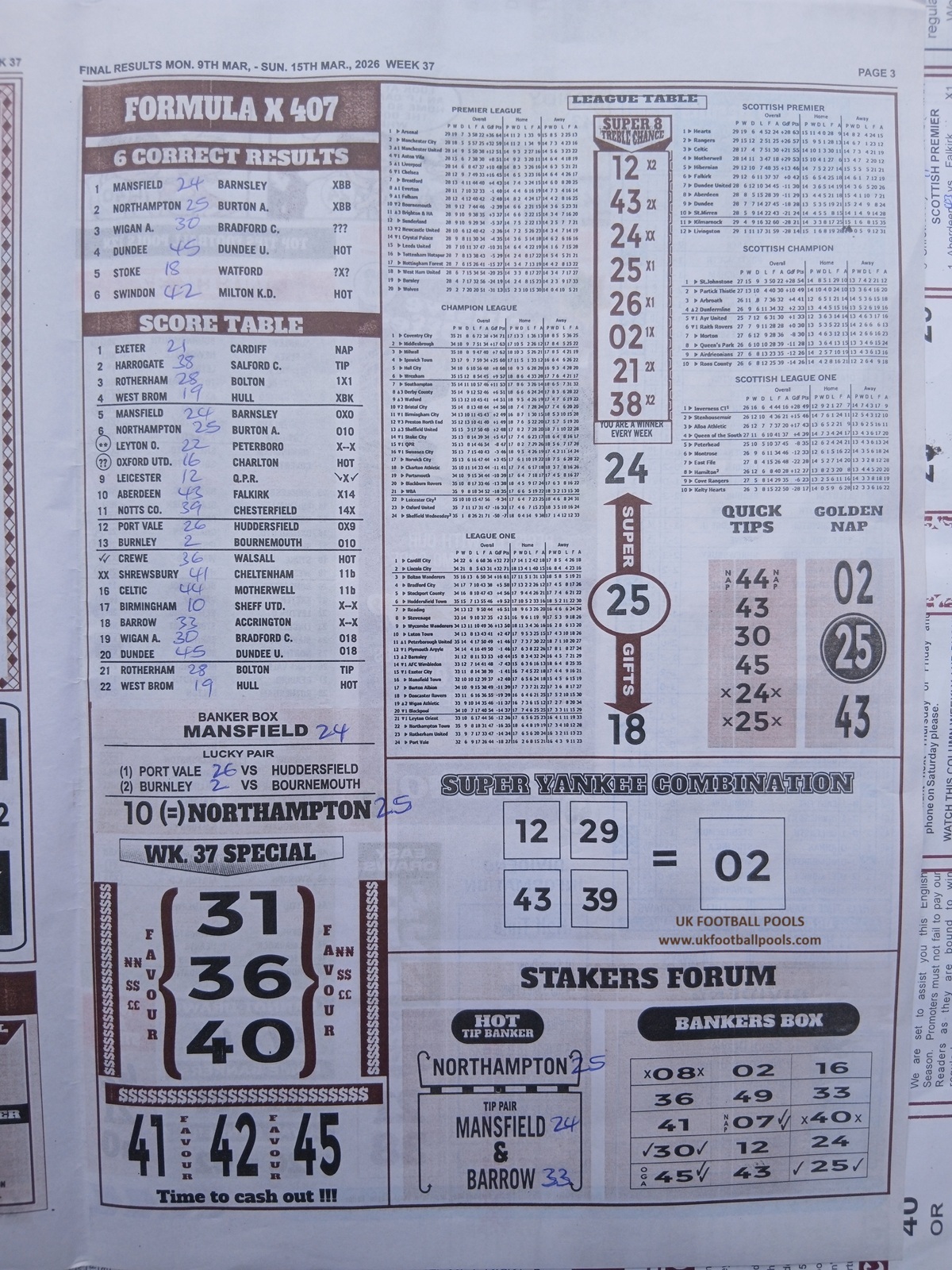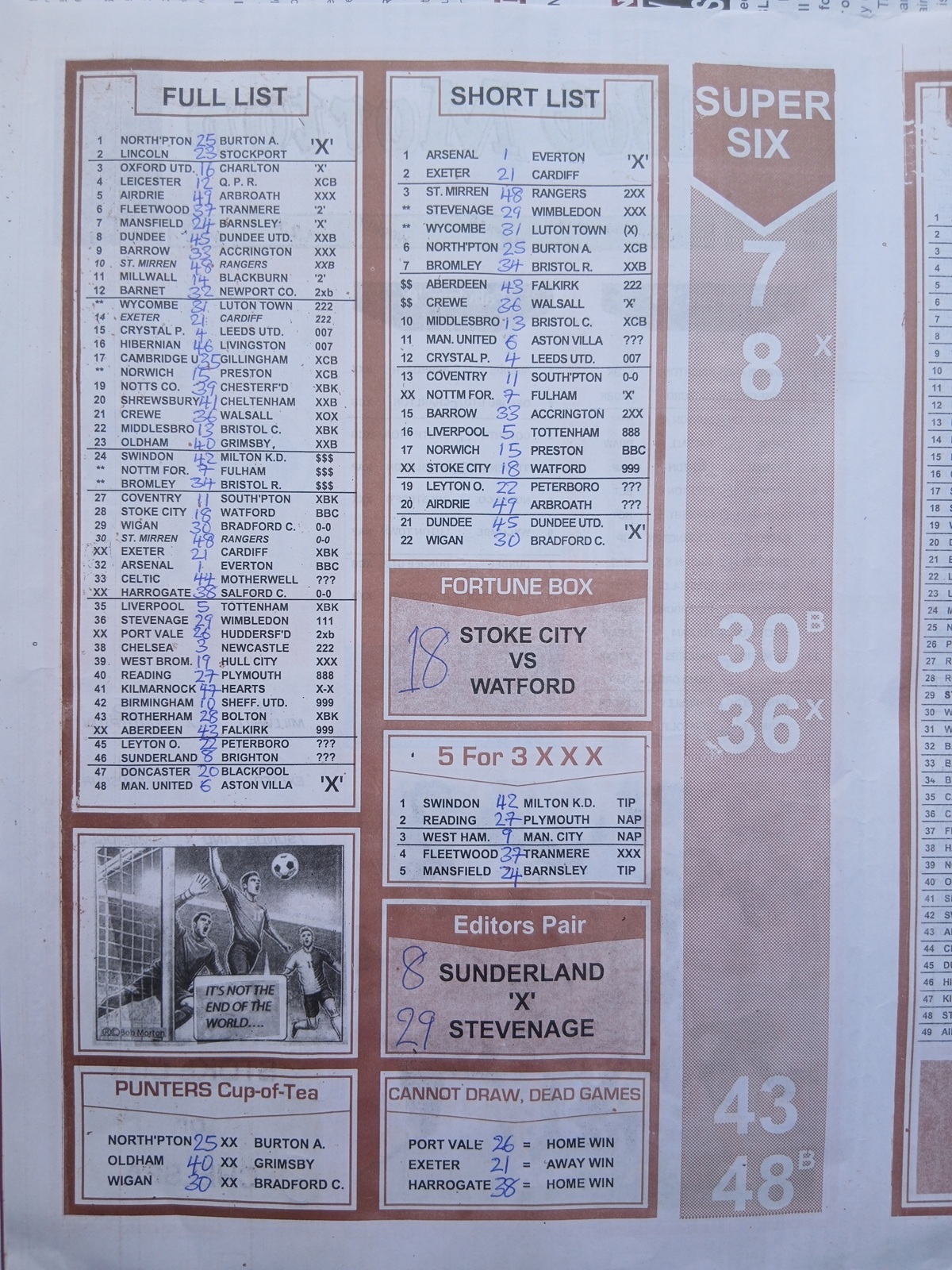 SPECIAL ADVANCE AND RIGHT ON FOOTBALL FIXTURES