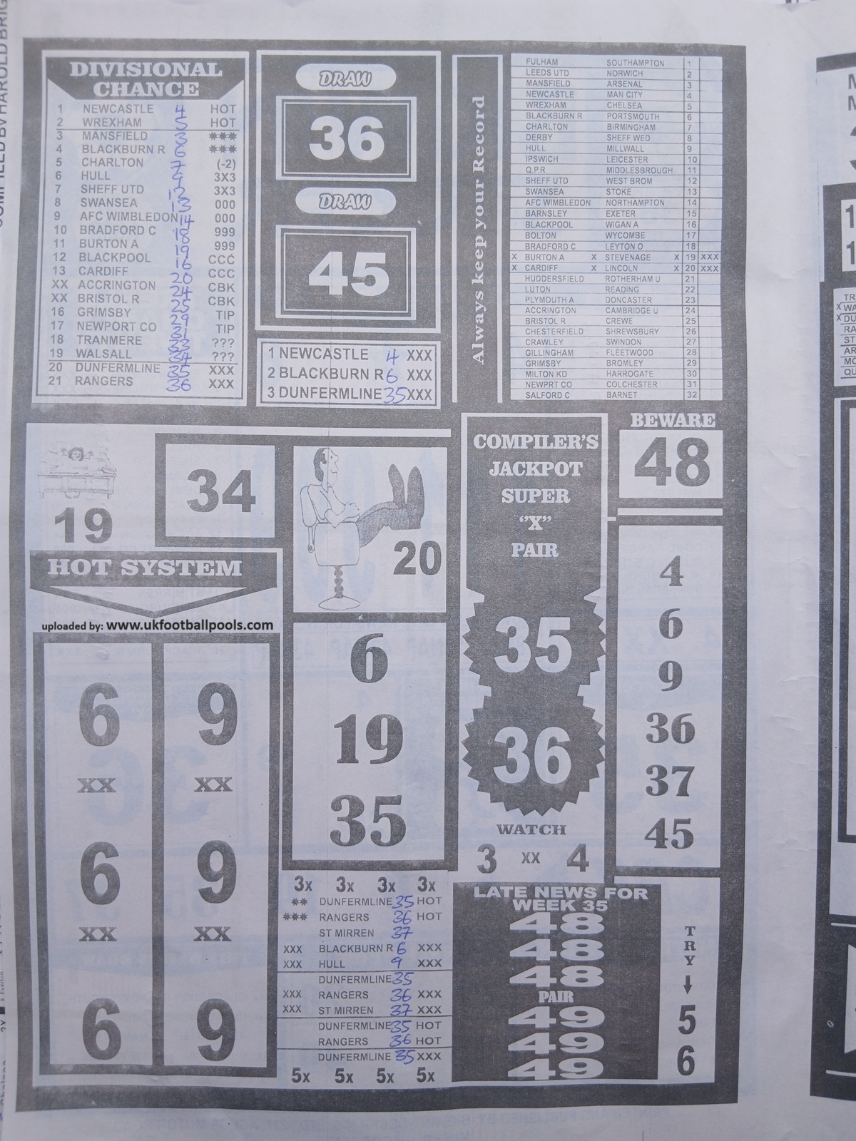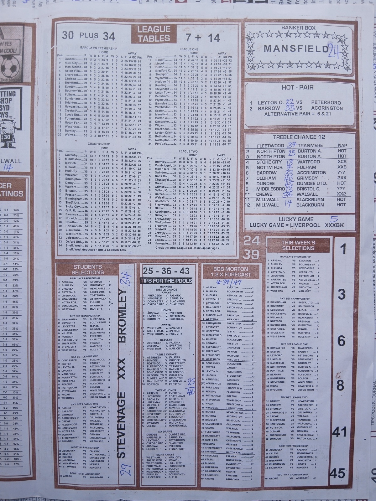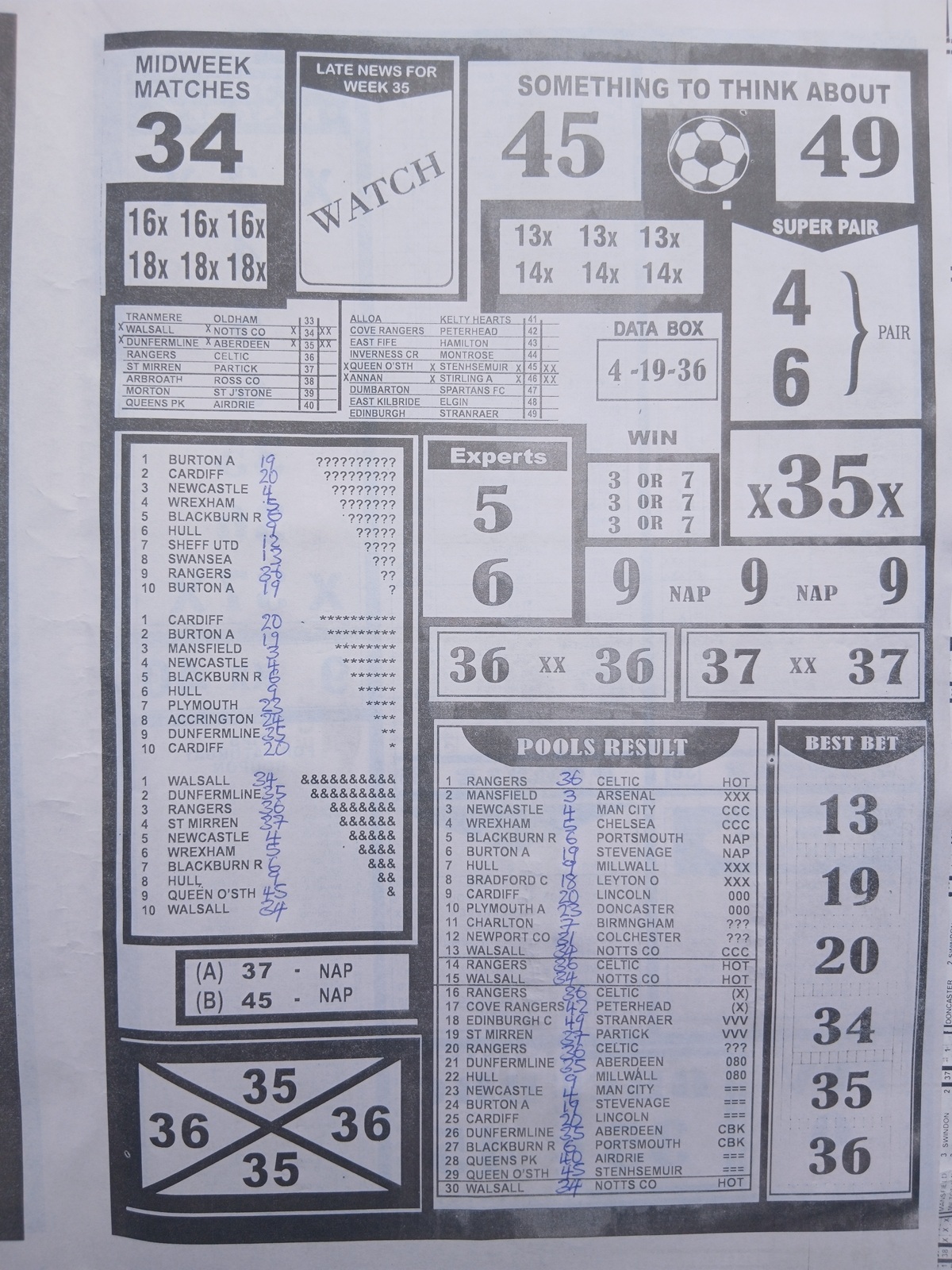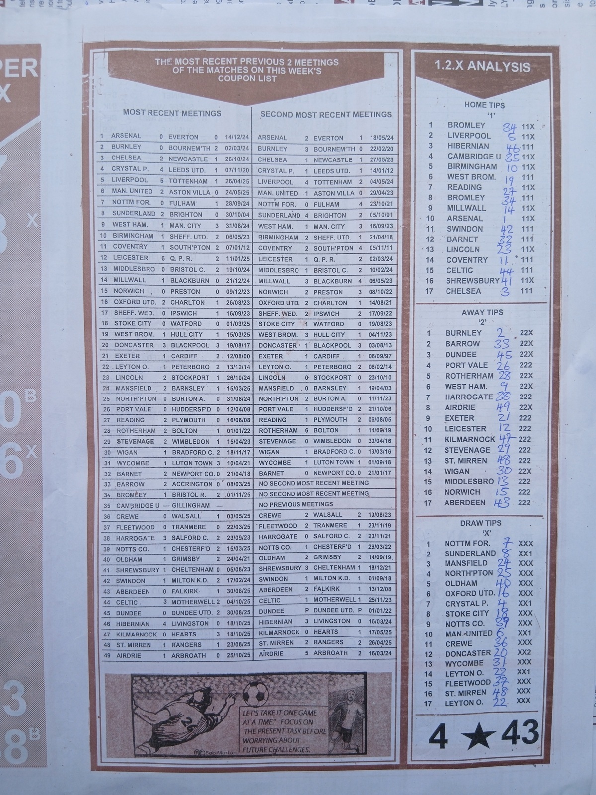 SPECIAL ADVANCE AND RIGHT ON FOOTBALL FIXTURES