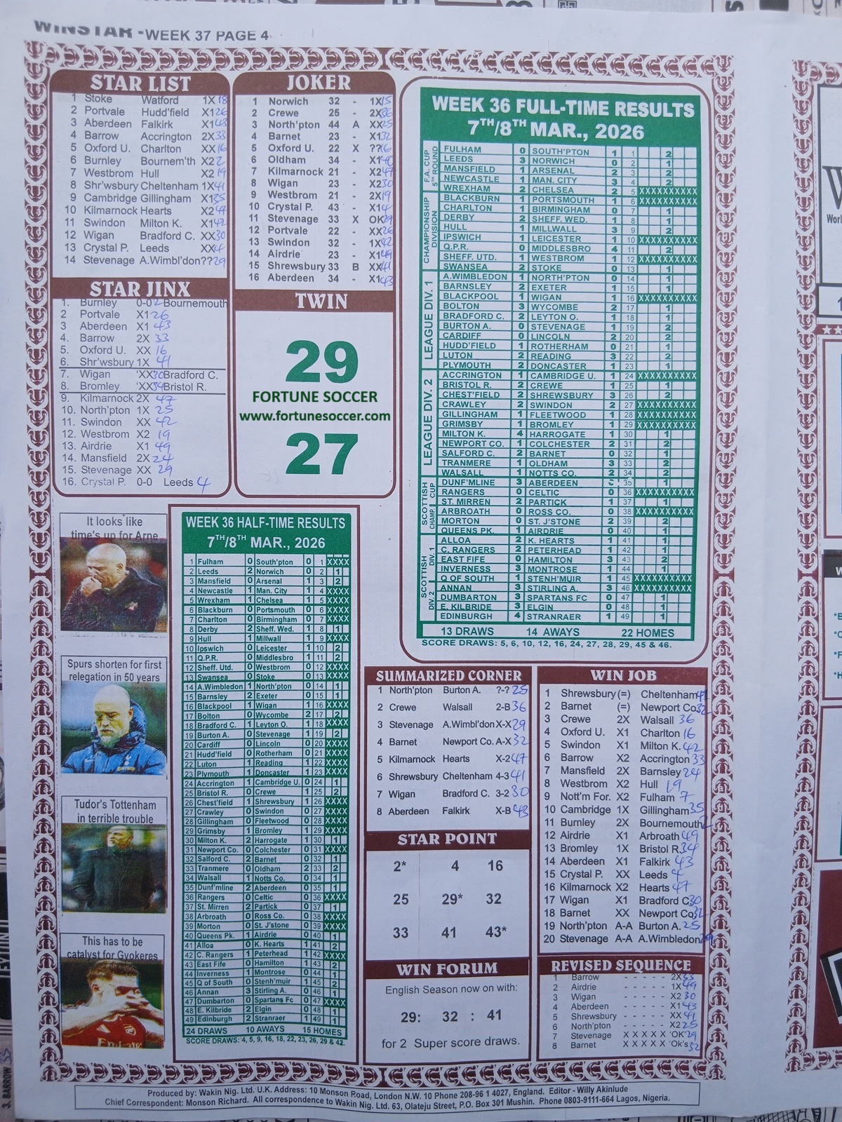 We also provide the best of Nigeria’s leading football pool forecasting papers, such as WinStar, BigWin, Dream International Research, and Weekly 1.X.2 Matrix, and pool advance fixtures, such as Special Advance Fixtures and Fortune Advanced Fixtures.