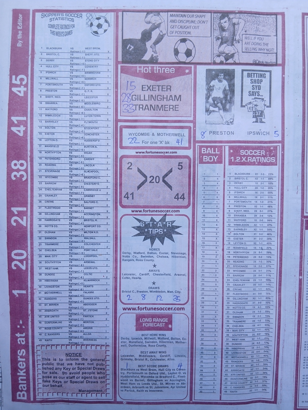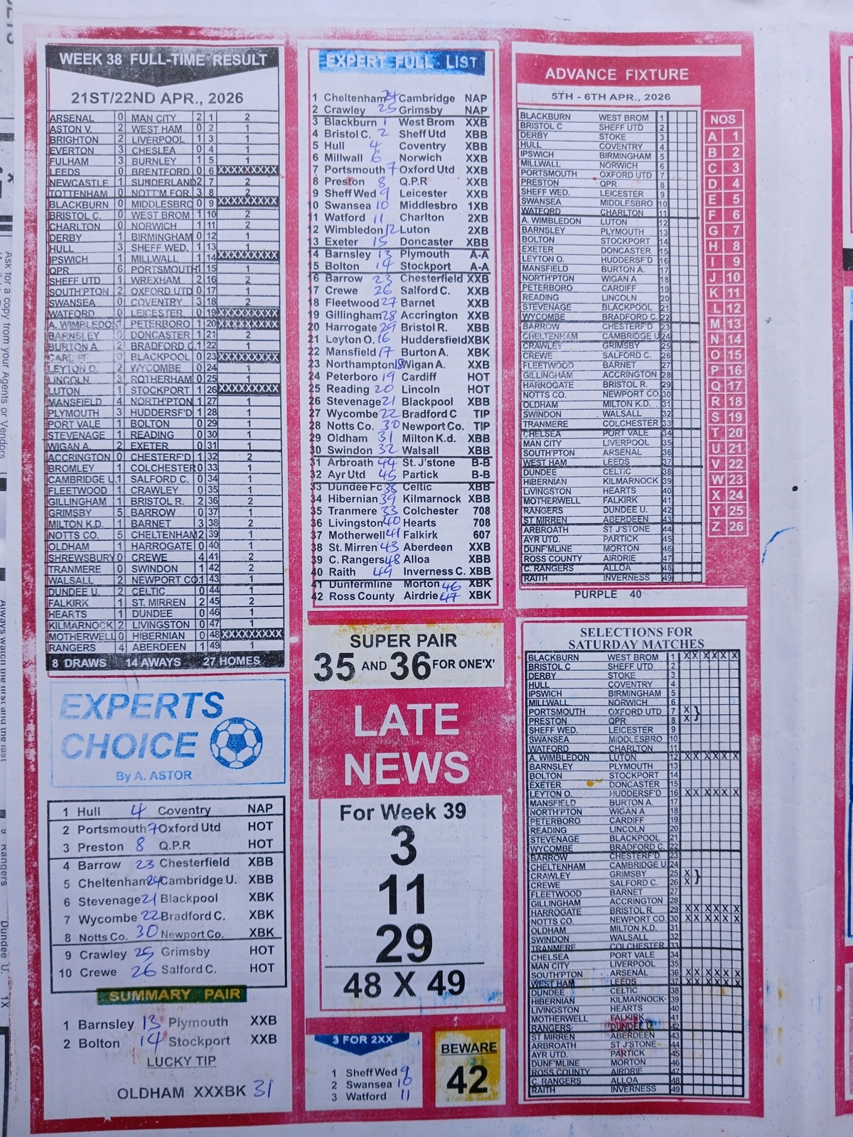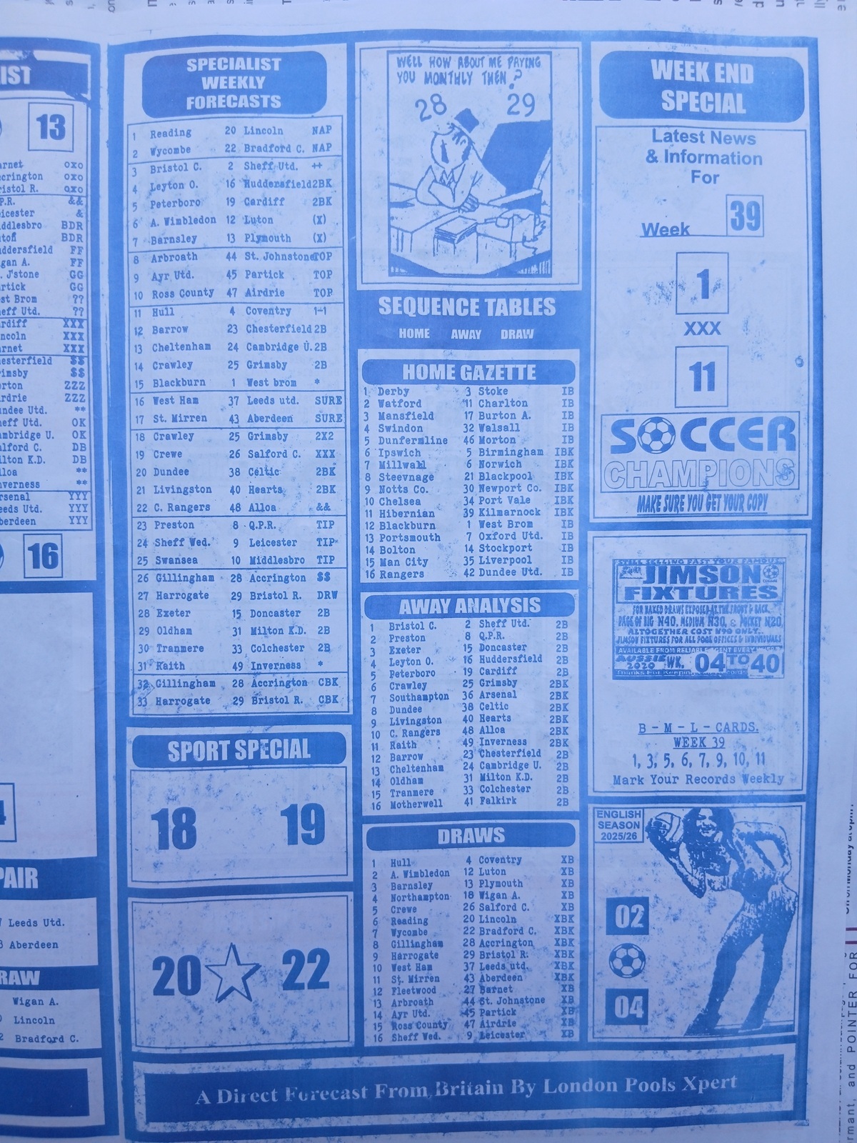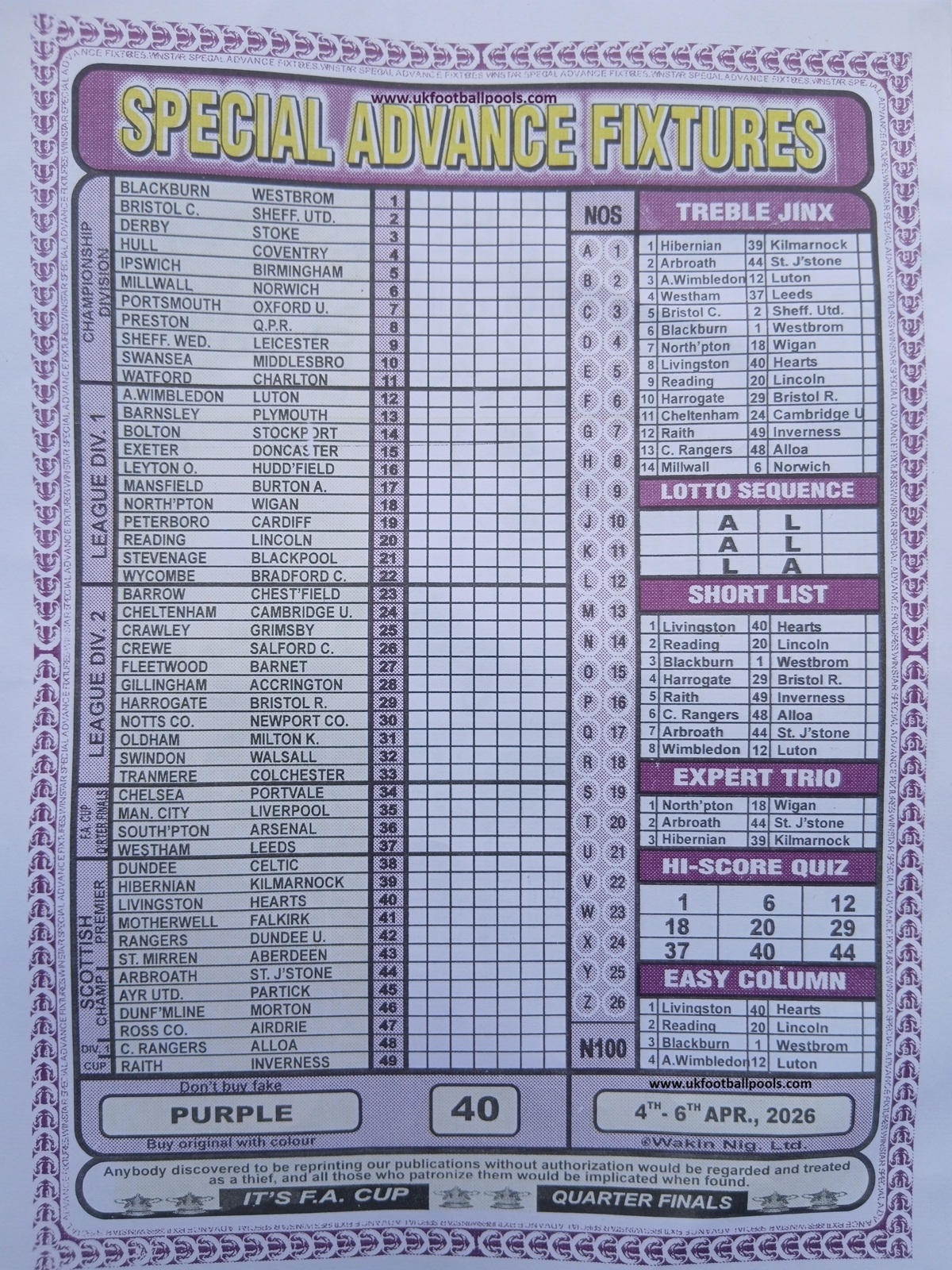 SPECIAL ADVANCE AND RIGHT ON FOOTBALL FIXTURES