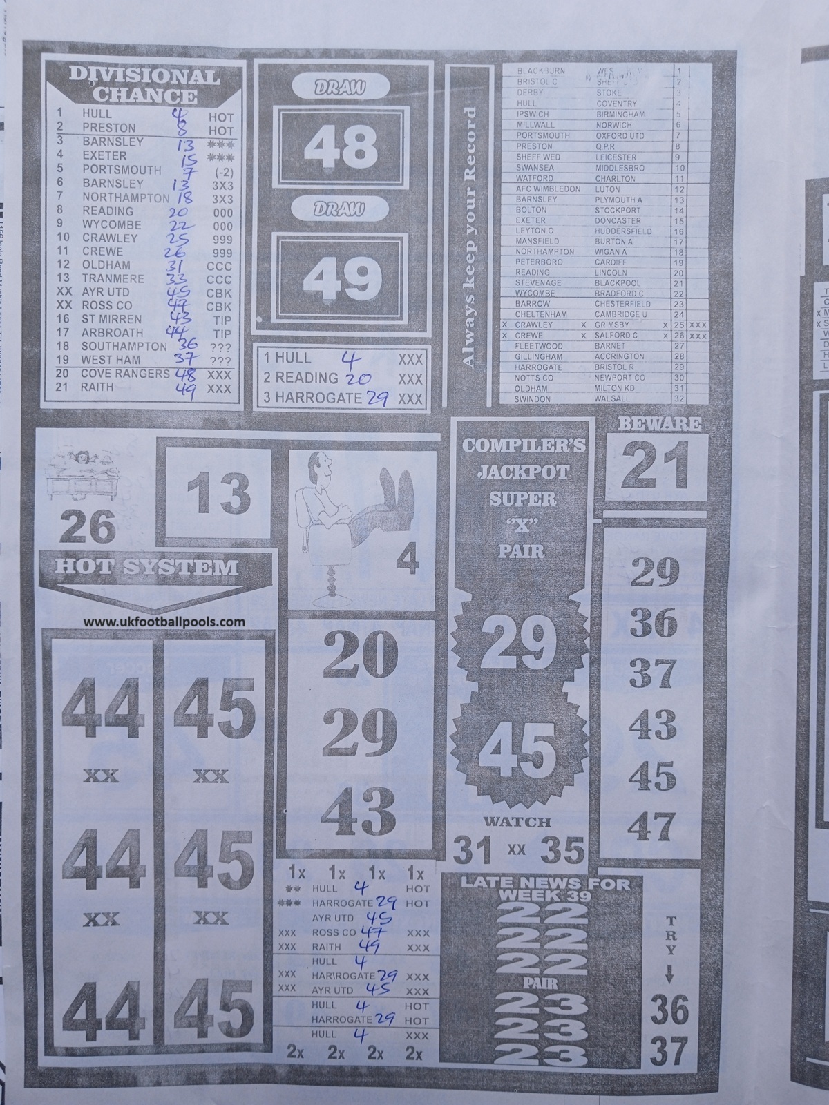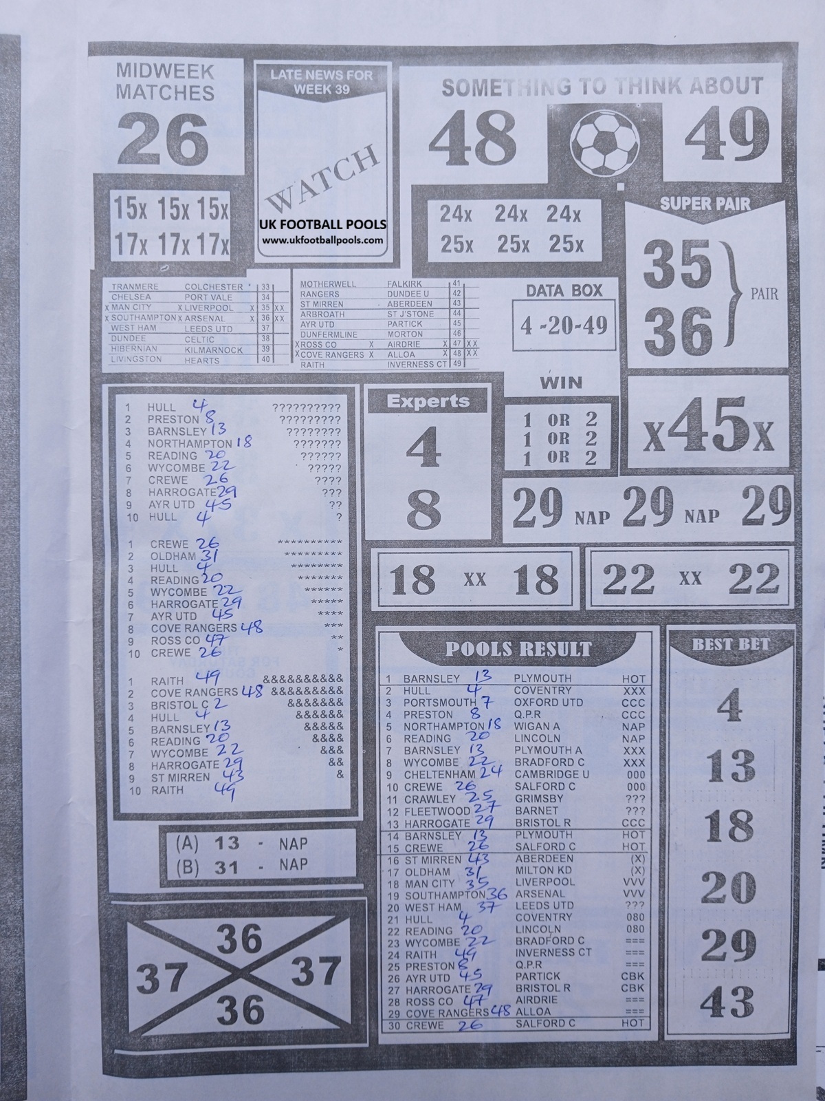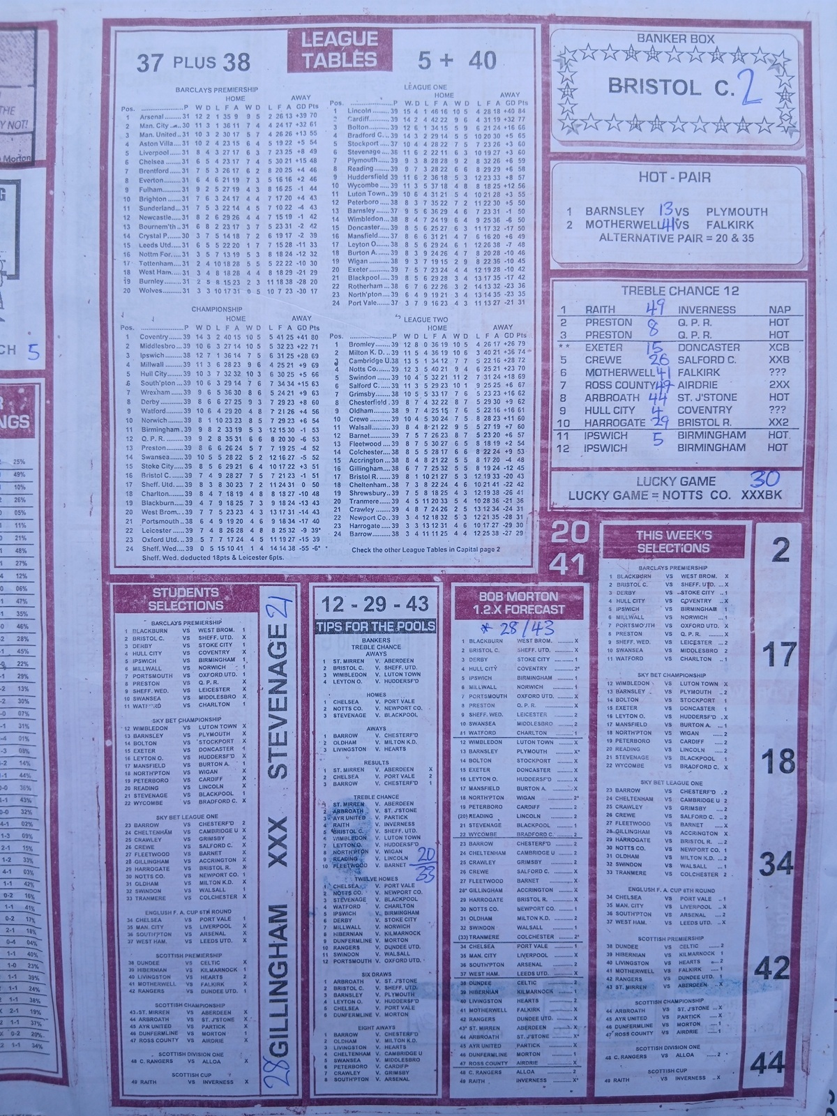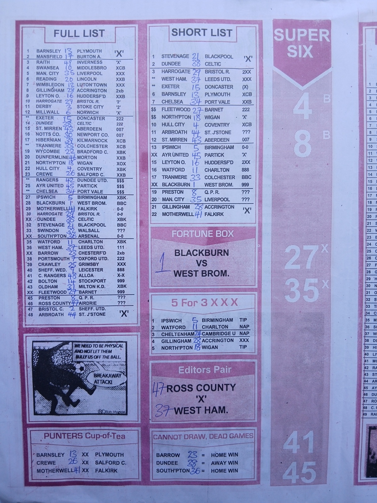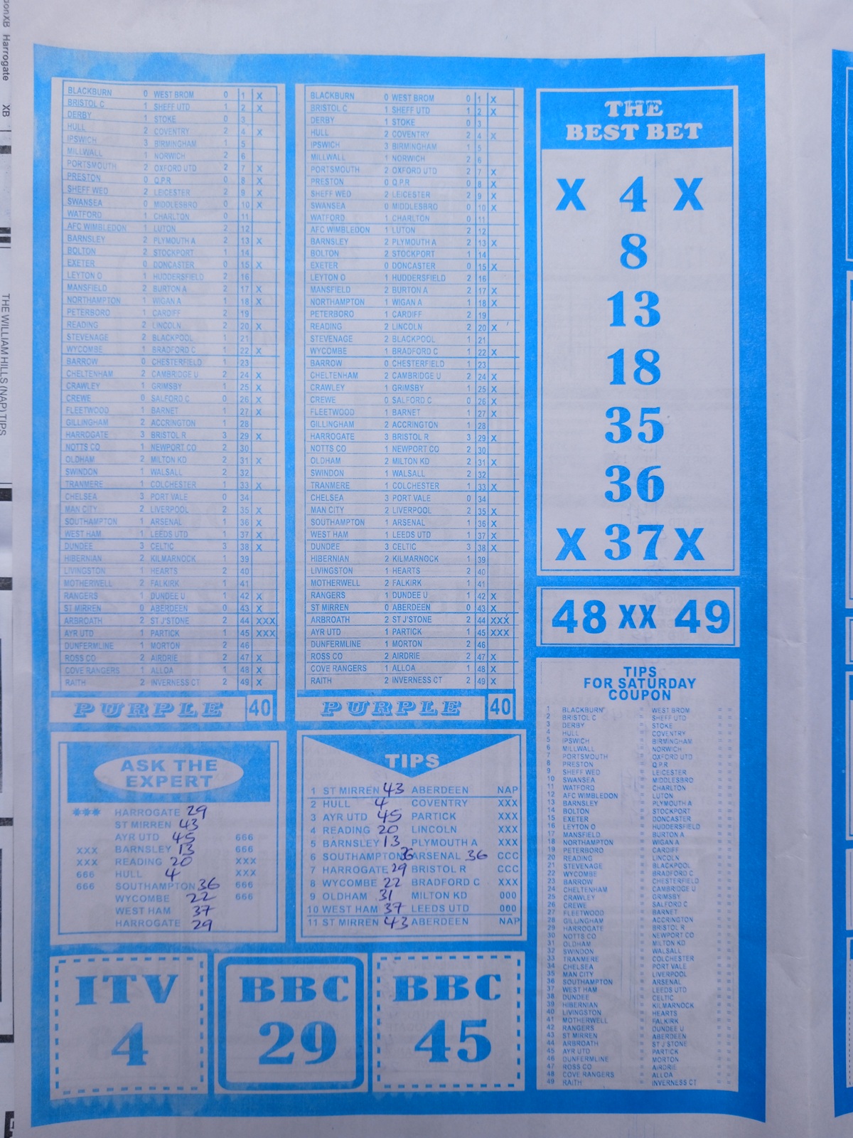 SPECIAL ADVANCE AND RIGHT ON FOOTBALL FIXTURES