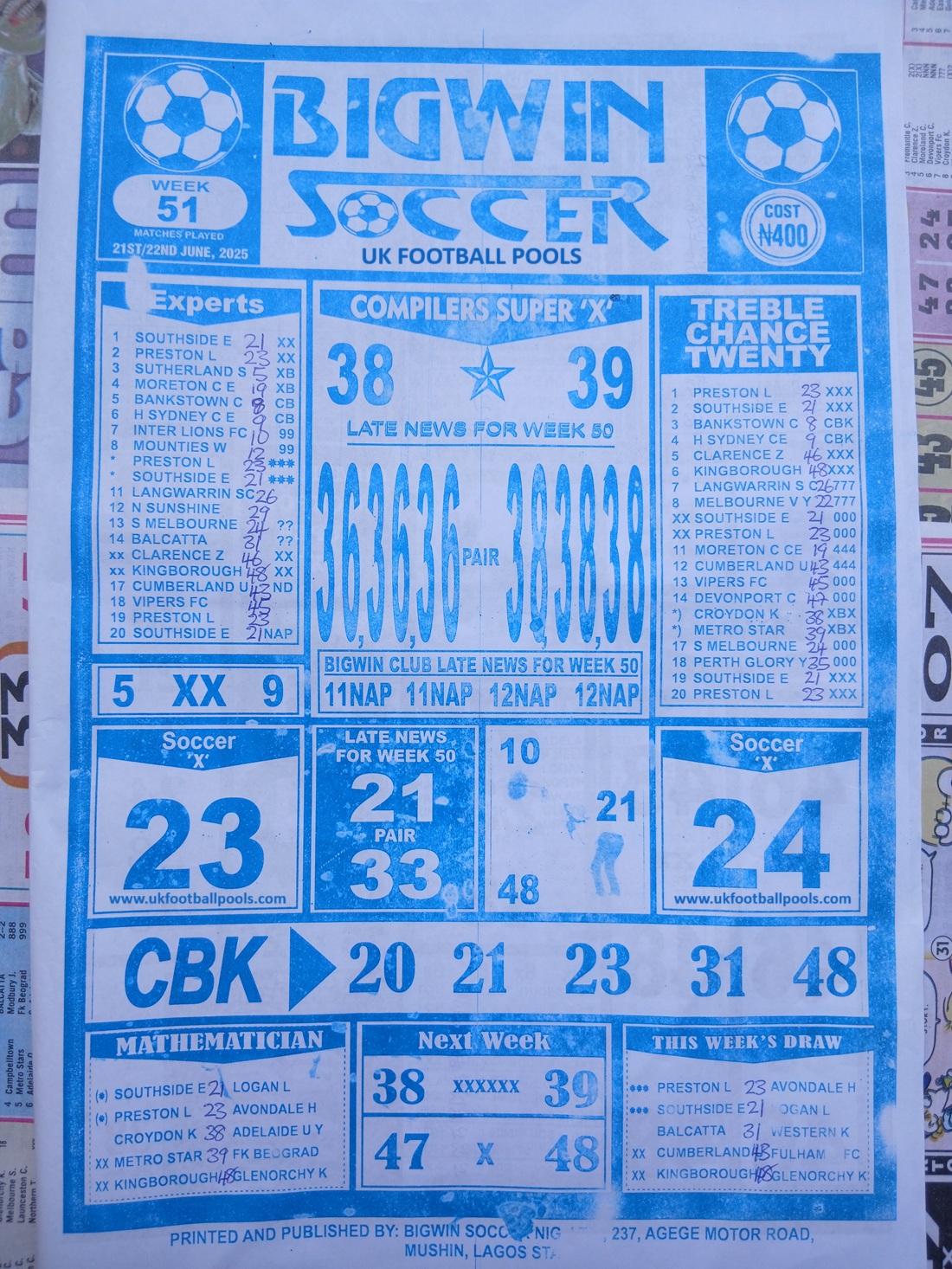 We also provide the best of Nigeria’s leading football pool forecasting papers, such as WinStar, BigWin, Dream International Research, and Weekly 1.X.2 Matrix, and pool advance fixtures, such as Special Advance Fixtures and Fortune Advanced Fixtures.