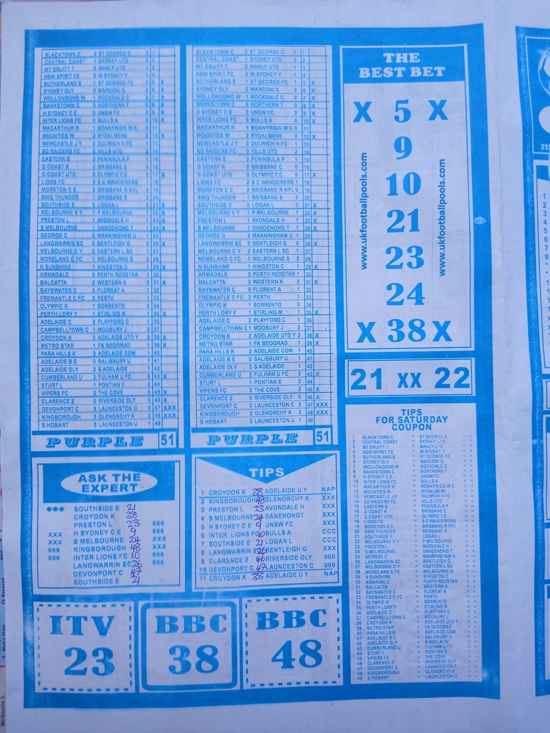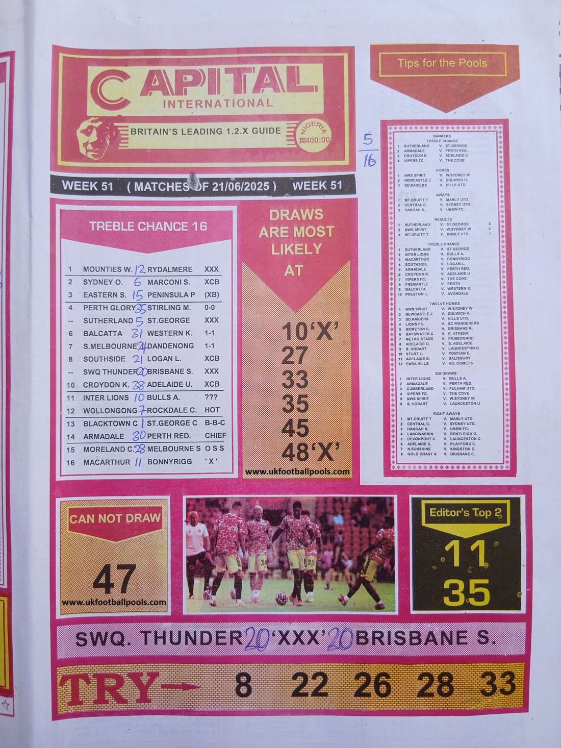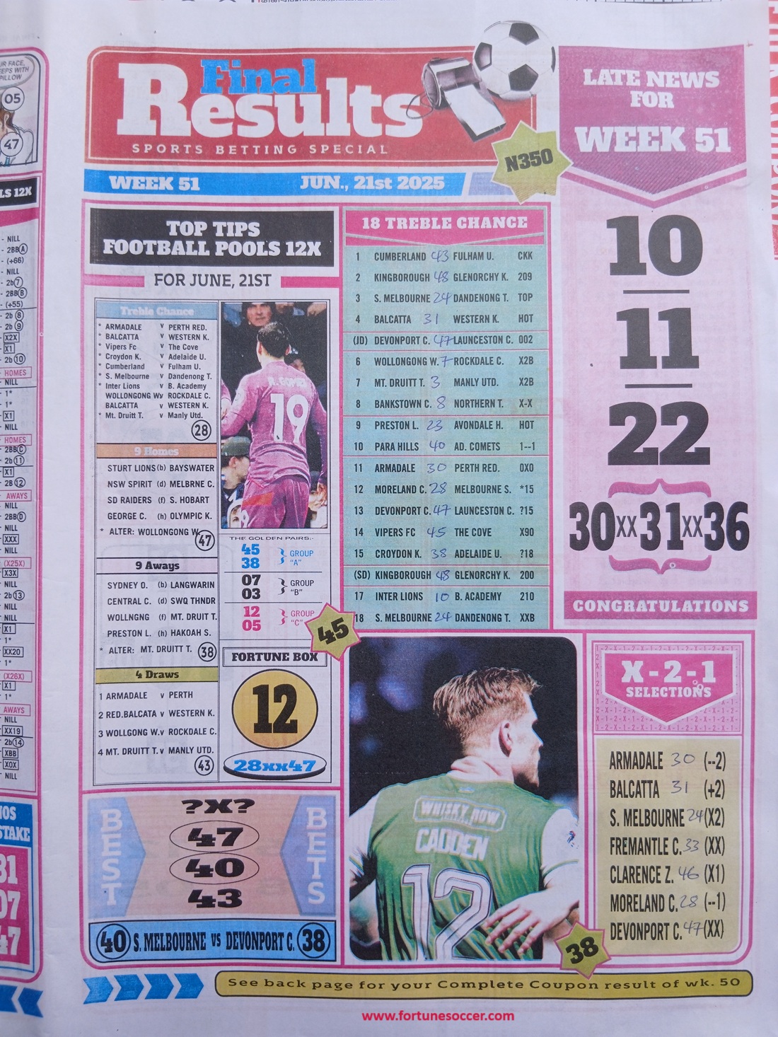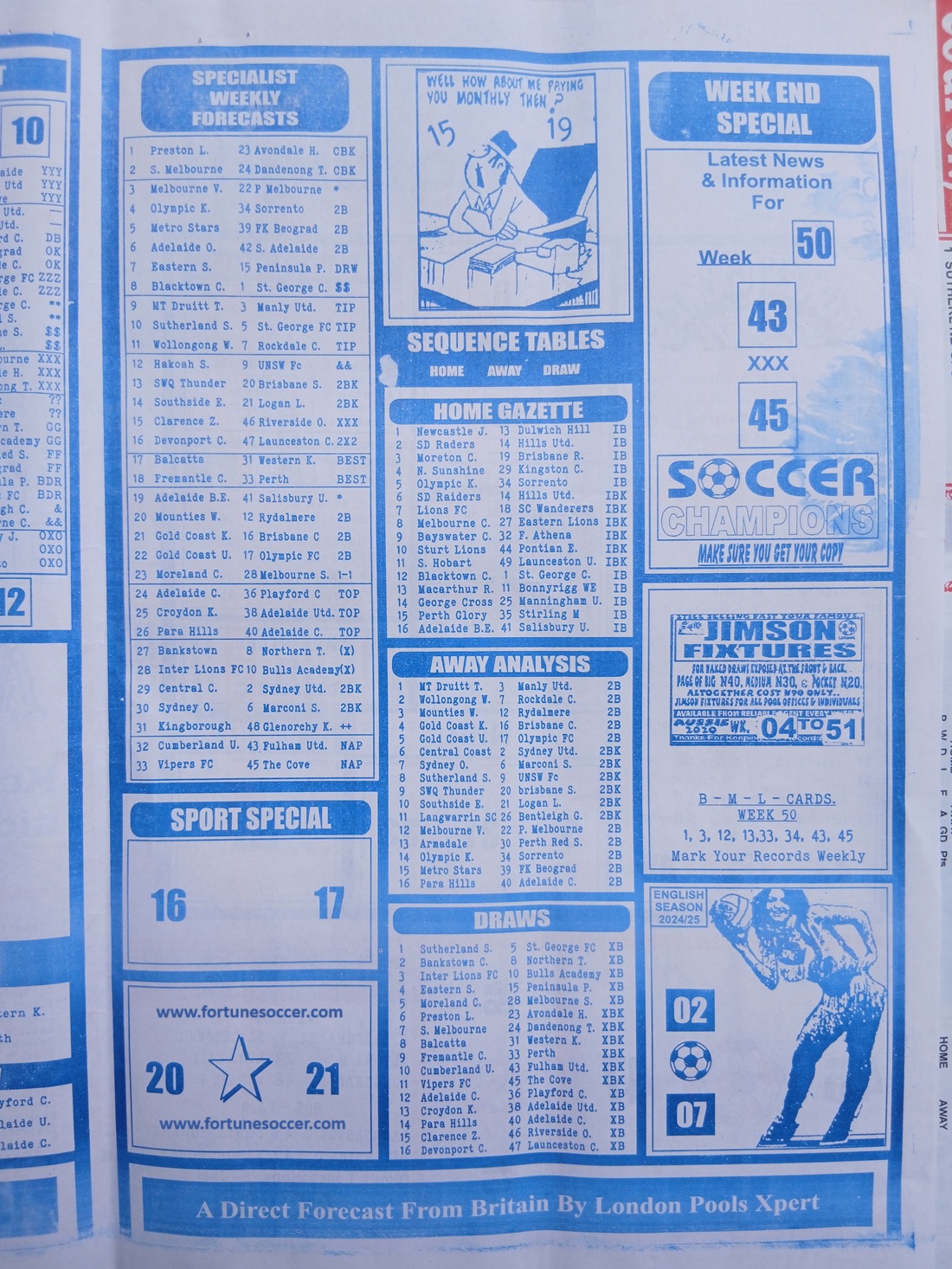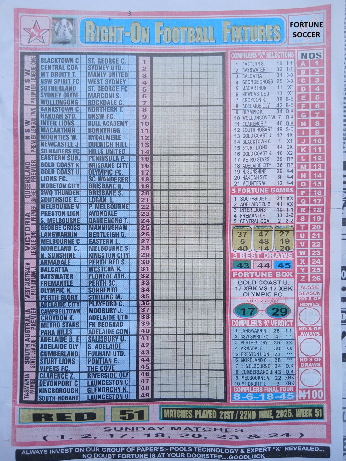 SPECIAL ADVANCE AND RIGHT ON FOOTBALL FIXTURES