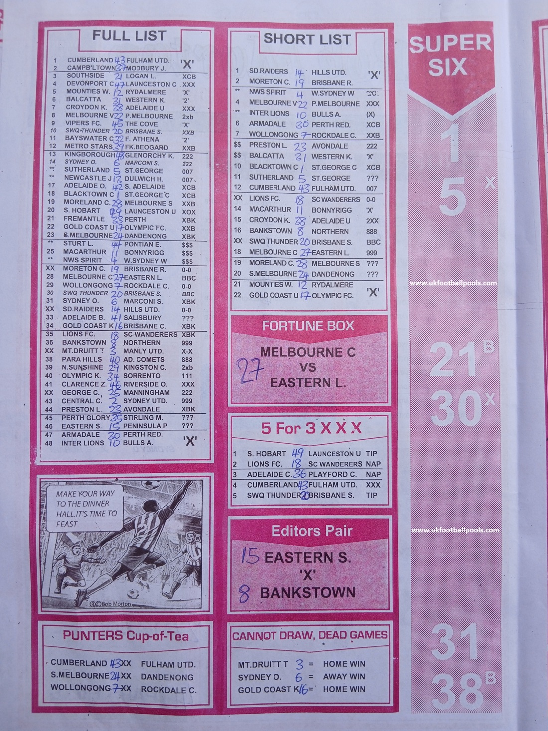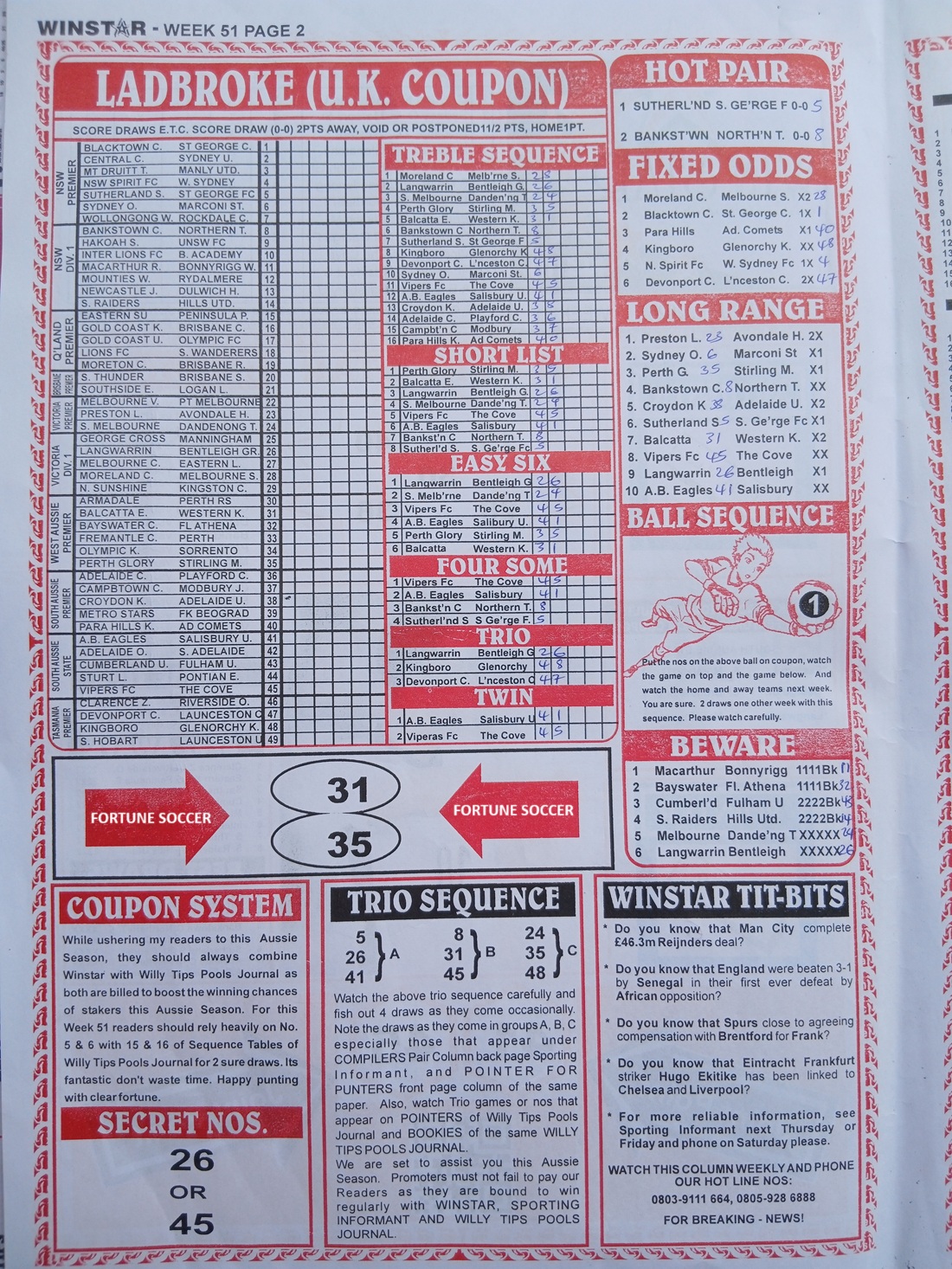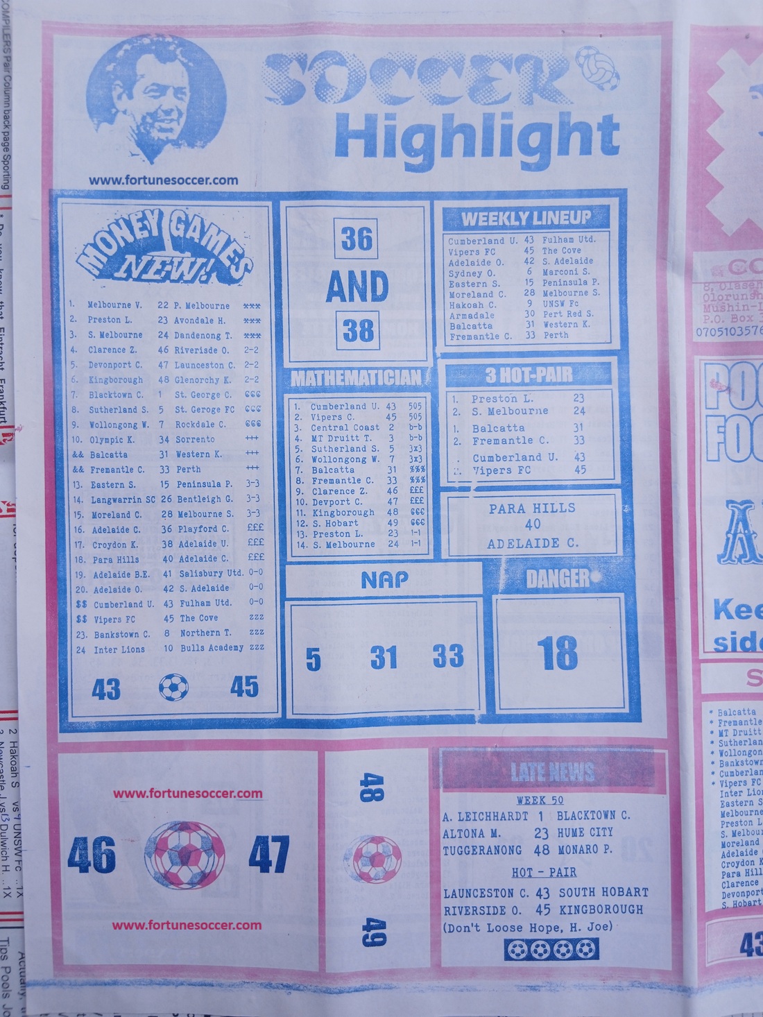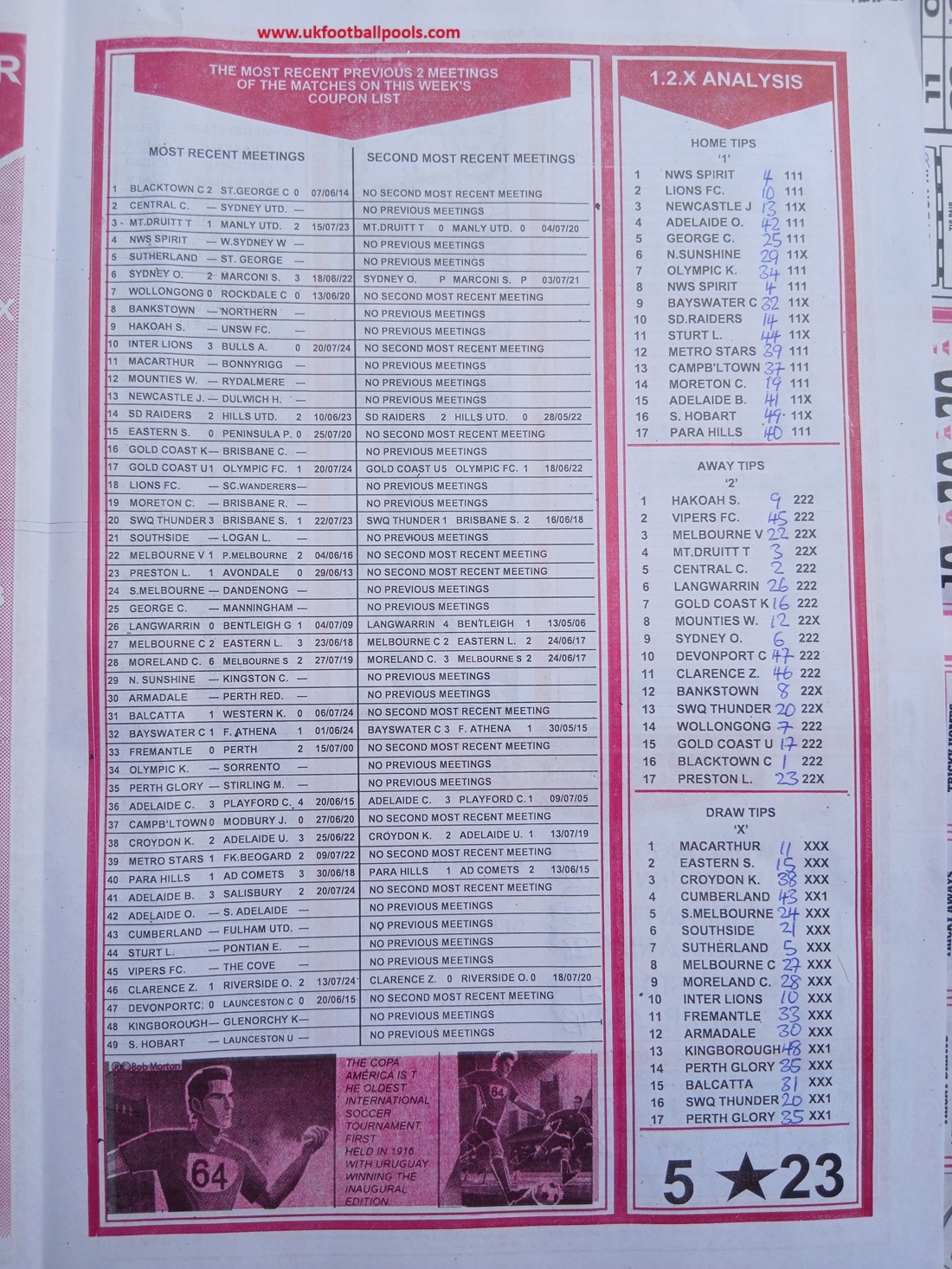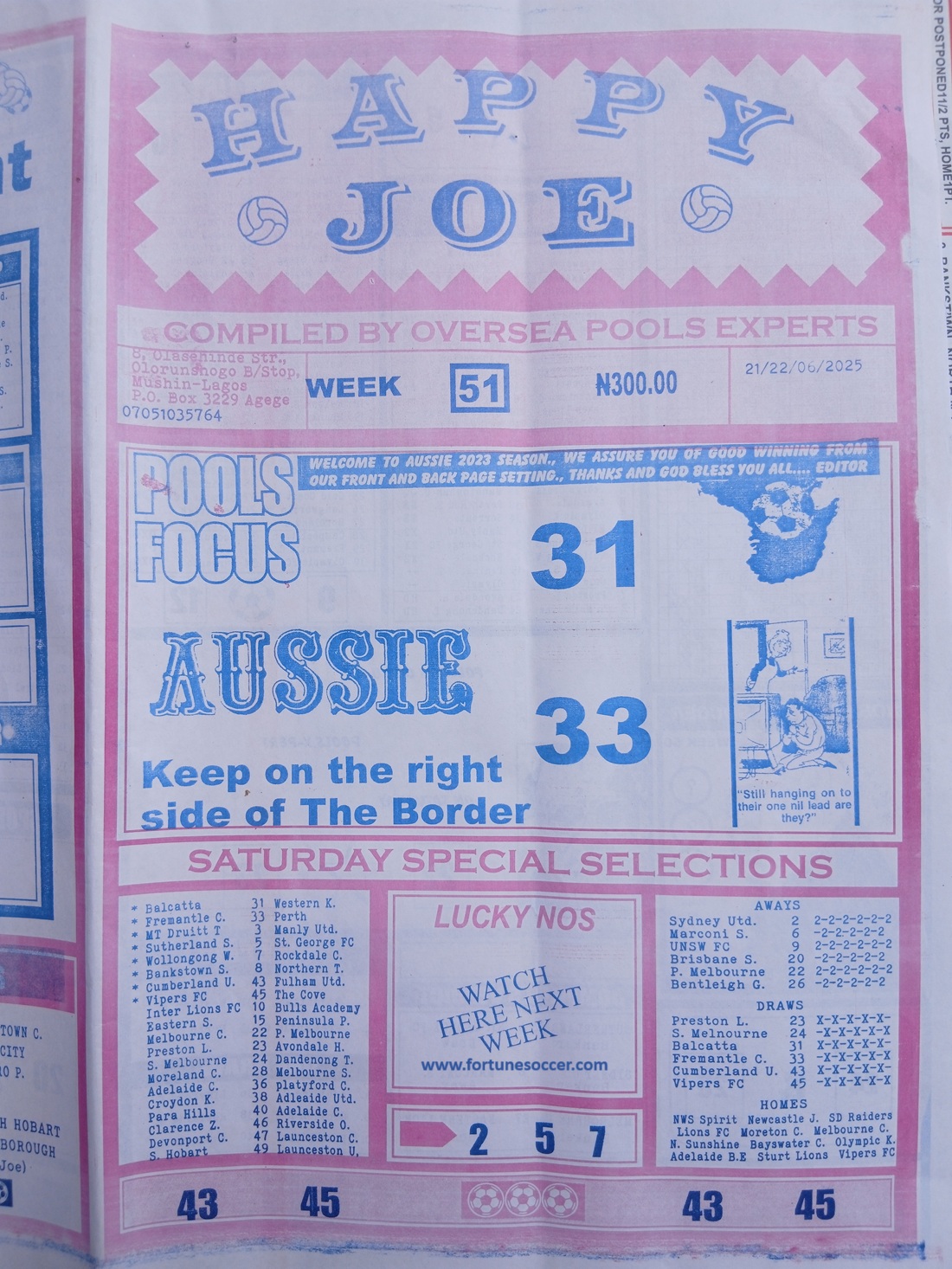 SPECIAL ADVANCE AND RIGHT ON FOOTBALL FIXTURES