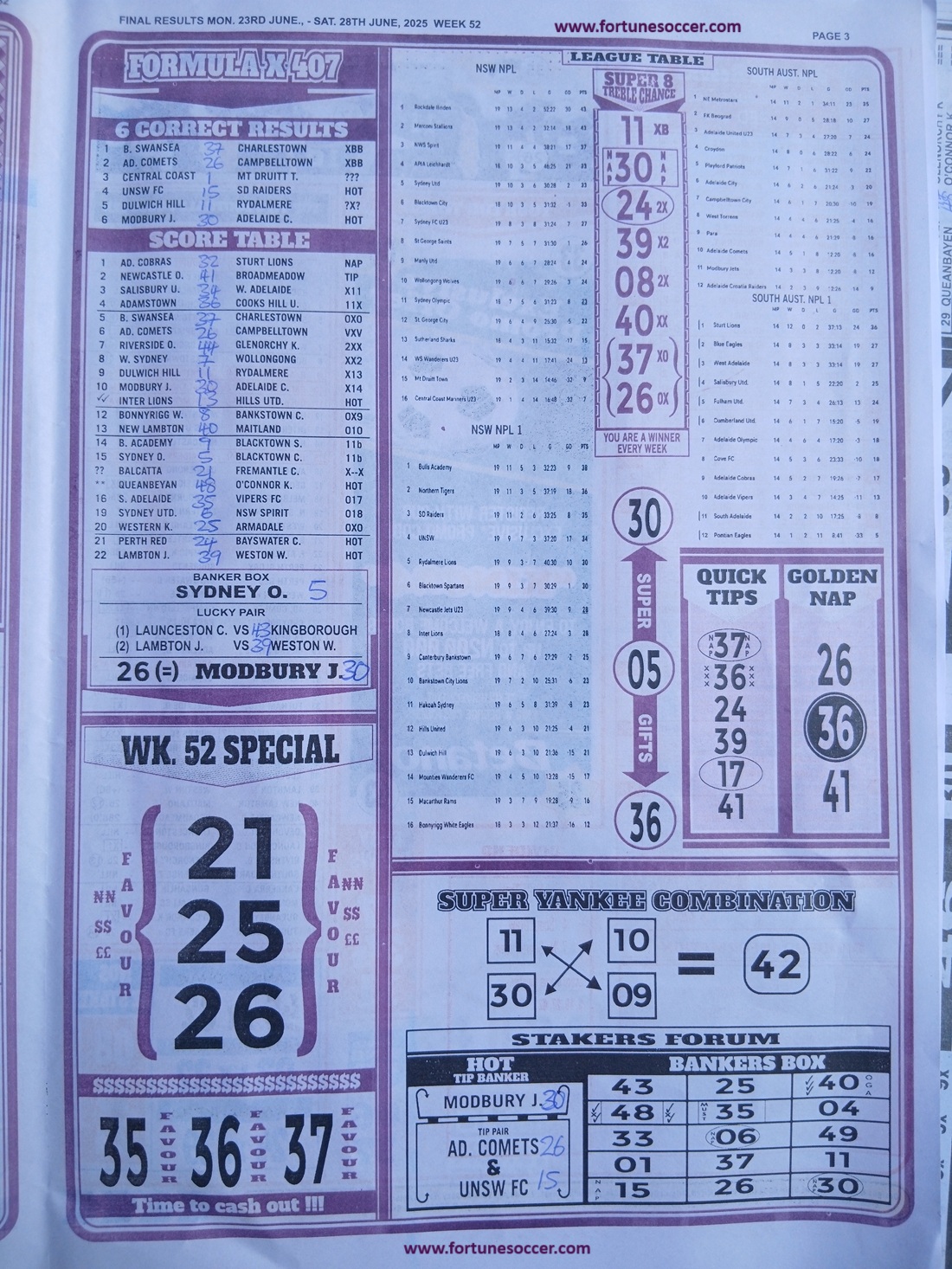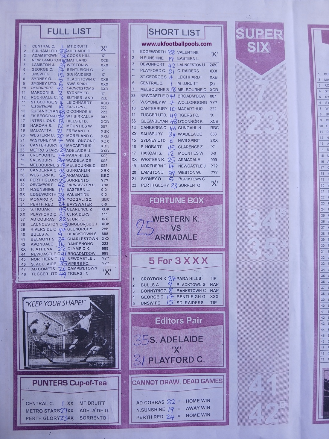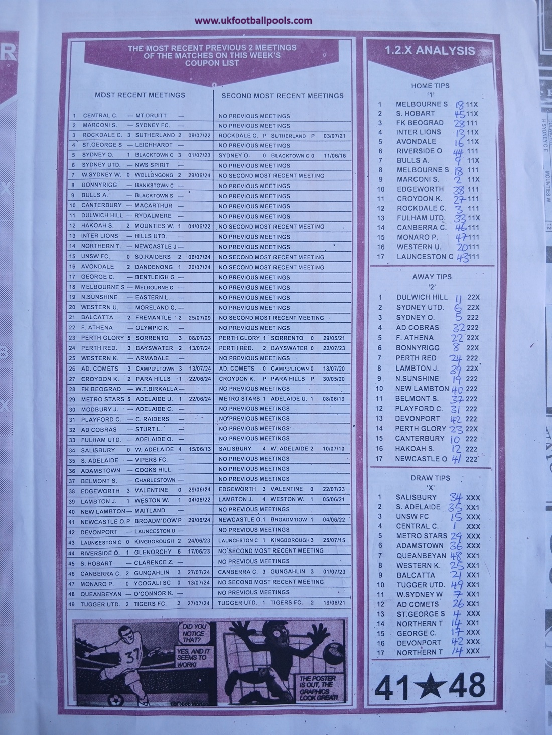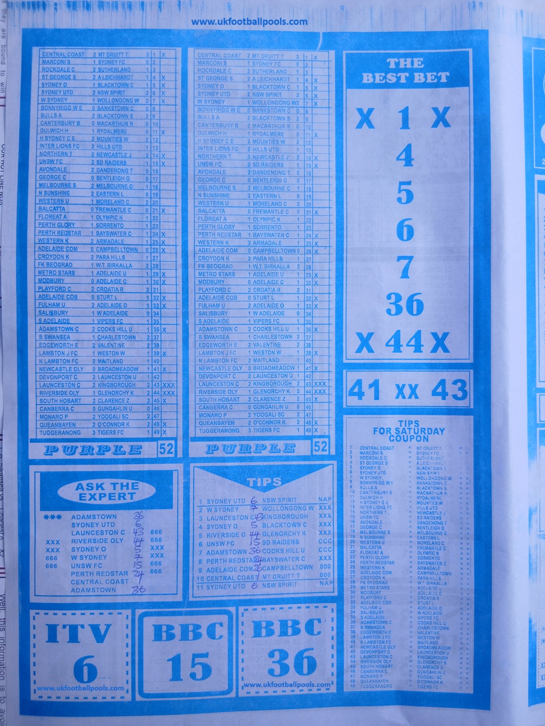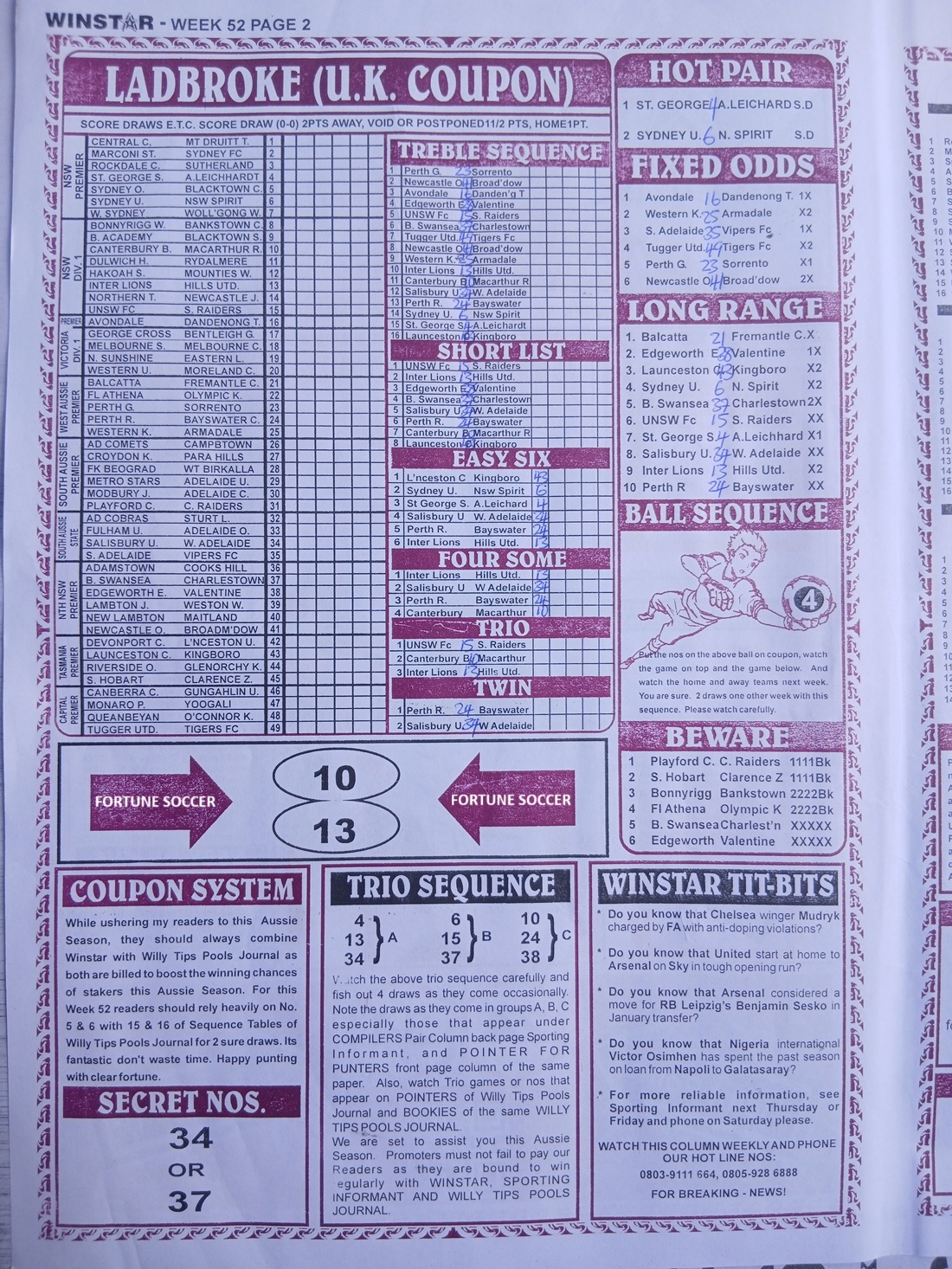 SPECIAL ADVANCE AND RIGHT ON FOOTBALL FIXTURES