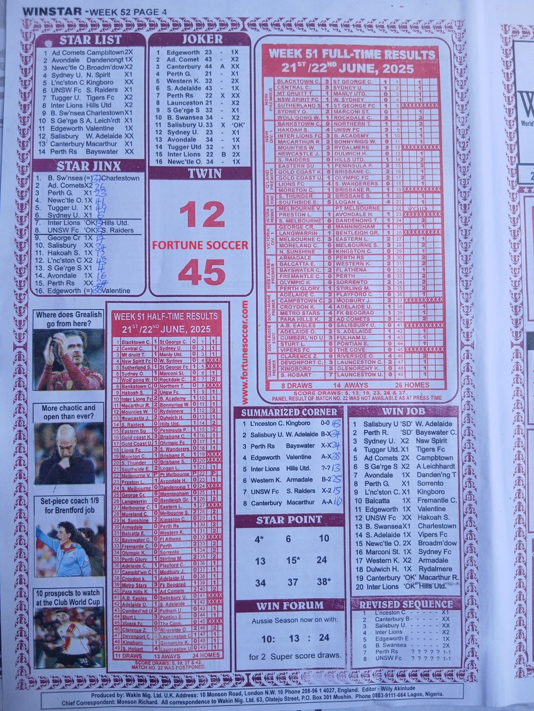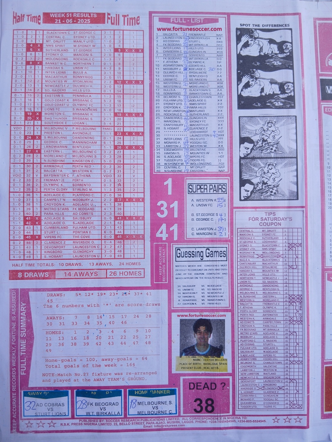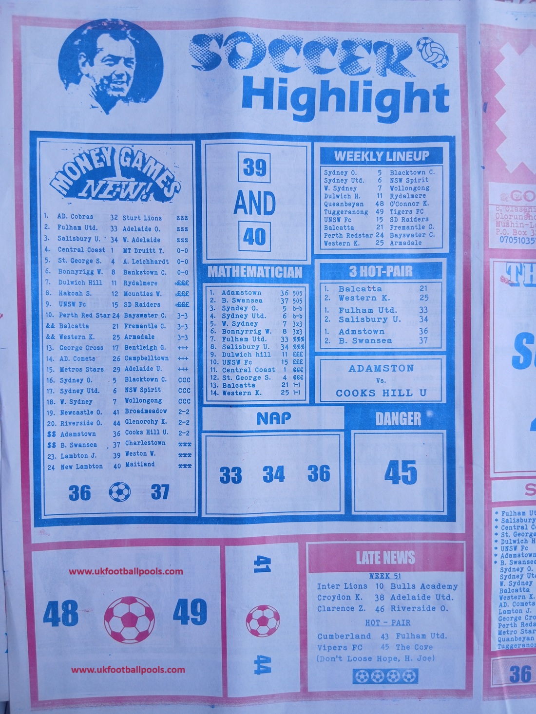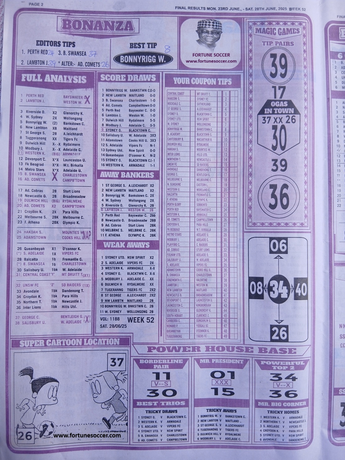 We also provide the best of Nigeria’s leading football pool forecasting papers, such as WinStar, BigWin, Dream International Research, and Weekly 1.X.2 Matrix, and pool advance fixtures, such as Special Advance Fixtures and Fortune Advanced Fixtures.